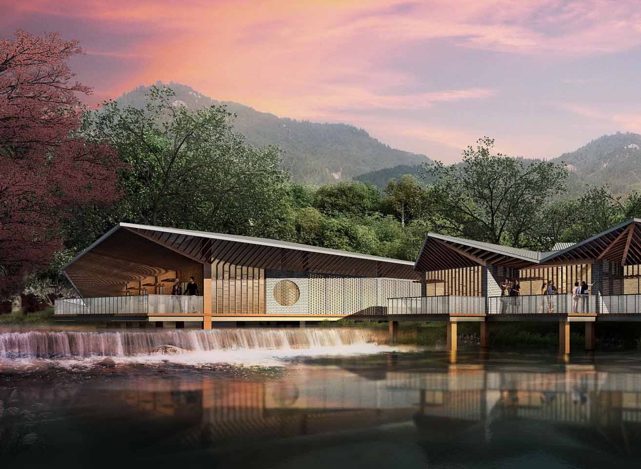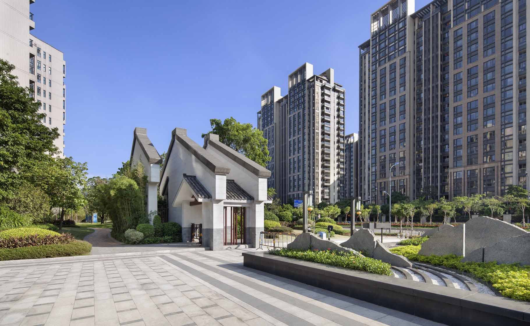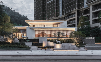 保利玥府位于江門新會古井,古井與崖山是著名的崖山海戰(zhàn)發(fā)生地,此戰(zhàn)之后,南宋宣告覆滅,保利玥府設(shè)計選擇讓景觀“消隱”,以極簡的手法來烘托建筑讓建筑與景完美交融。