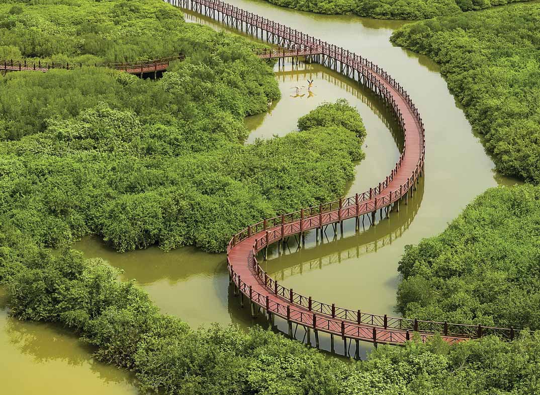 被譽(yù)為前海“綠芯”的桂灣公園,是前海第一個永久性、水廊道公園。項目共擁有100 多種、6000 多棵喬木,綠地率72% 以上?;谏鷳B(tài)優(yōu)先原則,項目布局紅樹林海水濕地約6 萬平方米,淡水濕地約2 萬平方米,打造“會呼吸...