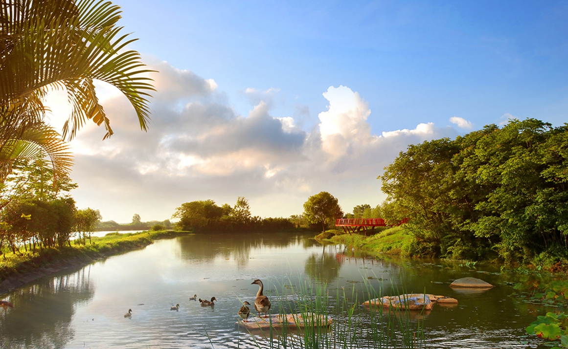 梅州富力城依山傍水,在中央形成生態(tài)湖,建筑依湖而建,擁有當(dāng)?shù)靥厣匀毁Y源。樹、河流、山田、泥土作為大自然的重要組成部分,是生命力的代表,城市中的人們生活在冰冷的水泥森林里,總會向往著綠色活力的度假居所...