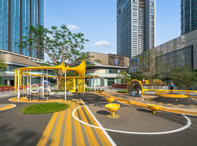 松山湖萬象匯延續(xù)城市綠色脈絡(luò),在原有綠地肌理上嵌入便民功能空間,將中軸核心步行街作為景觀重點,通過空間尺度研究,并采用循環(huán)永動的“圓”作為空間結(jié)構(gòu)構(gòu)建起一系列場景,將“圓”融入鋪裝和景觀元件之中,定義...