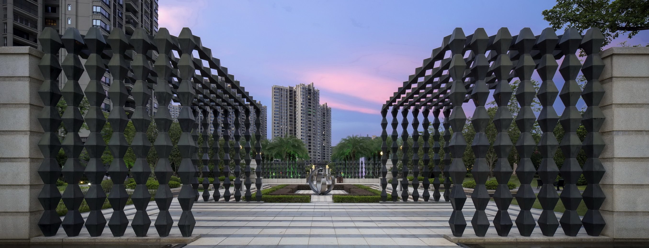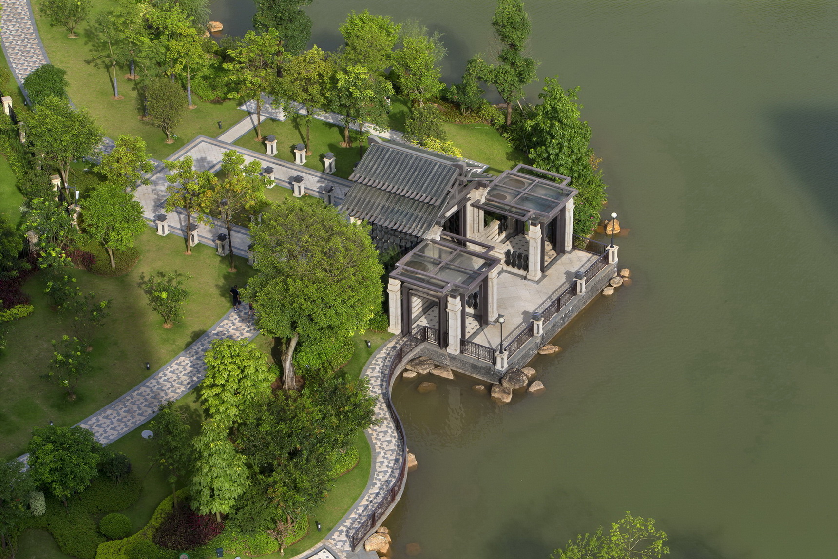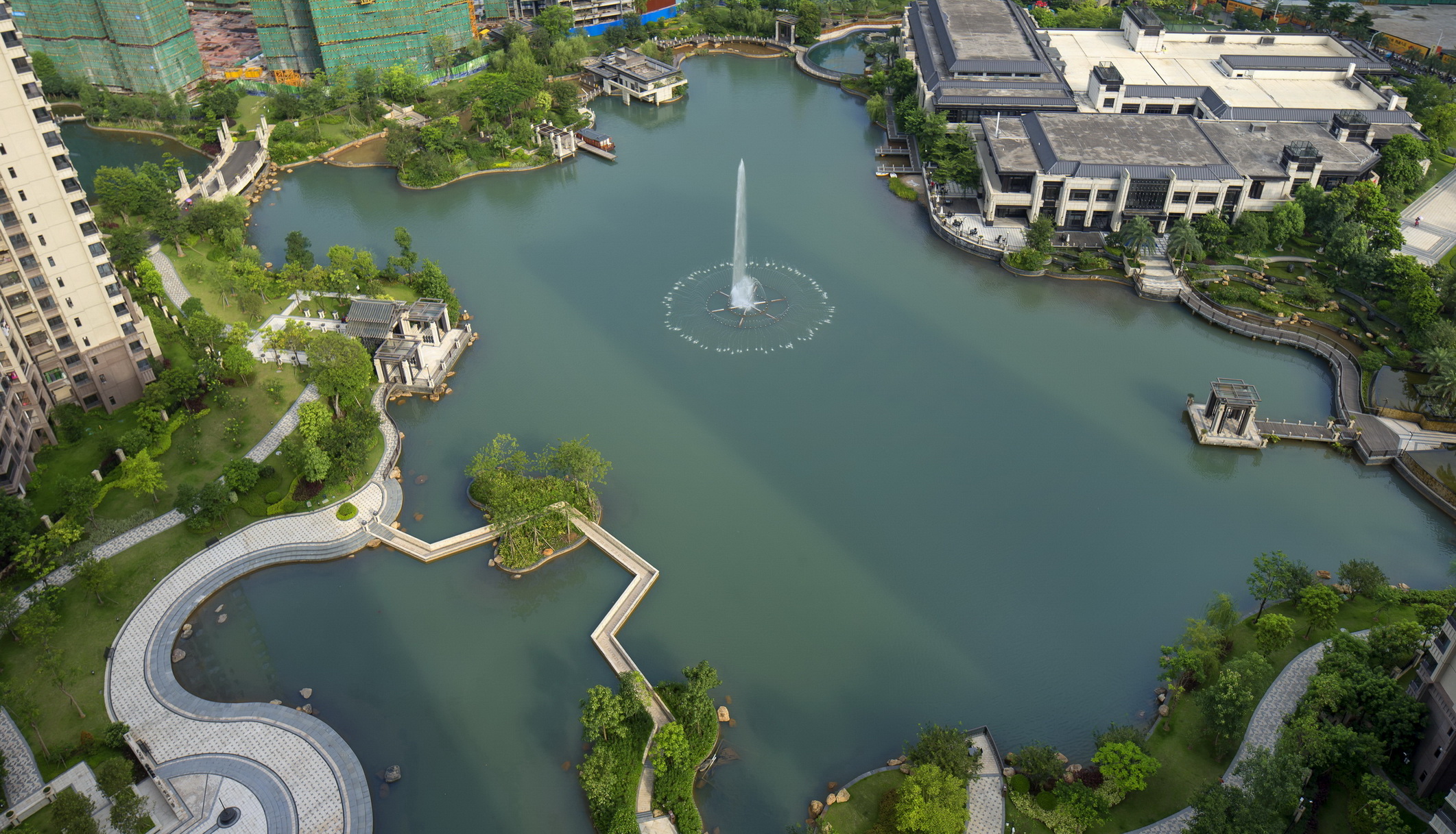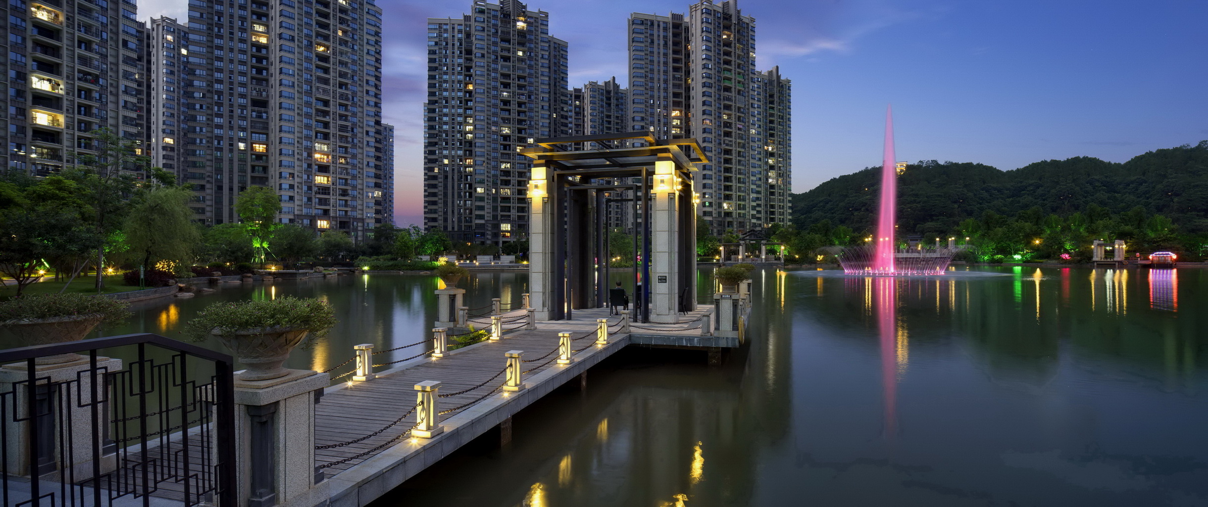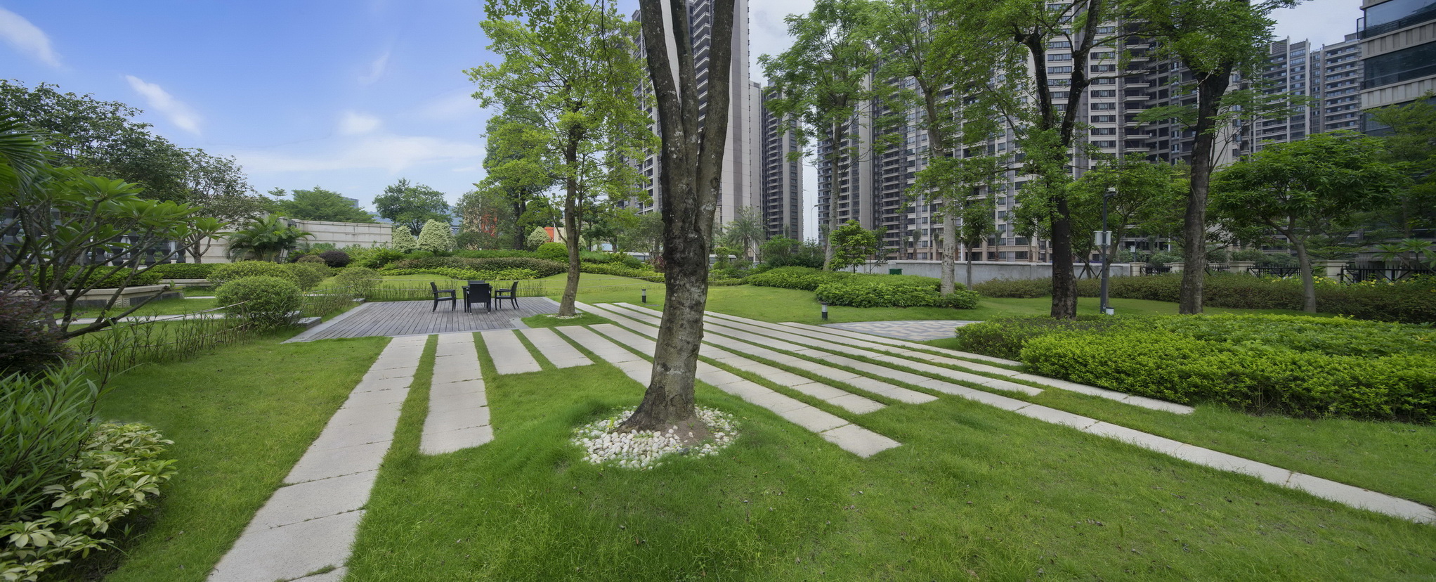 梅州富力城依山傍水,在中央形成生態(tài)湖,建筑依湖而建,擁有當?shù)靥厣匀毁Y源。樹、河流、山田、泥土作為大自然的重要組成部分,是生命力的代表,城市中的人們生活在冰冷的水泥森林里,總會向往著綠色活力的度假居所,抽取大自然里的肌為這一切作基礎(chǔ)。樹林已經(jīng)是城市的稀缺資源,而本項目希望最大限度的利用土地資源,營造出大片綠地河流的景觀效果,同時為了迎合當代社會精英所追求的健康、環(huán)保、可持續(xù)等生活理念,為其提供尋找自然的居所。