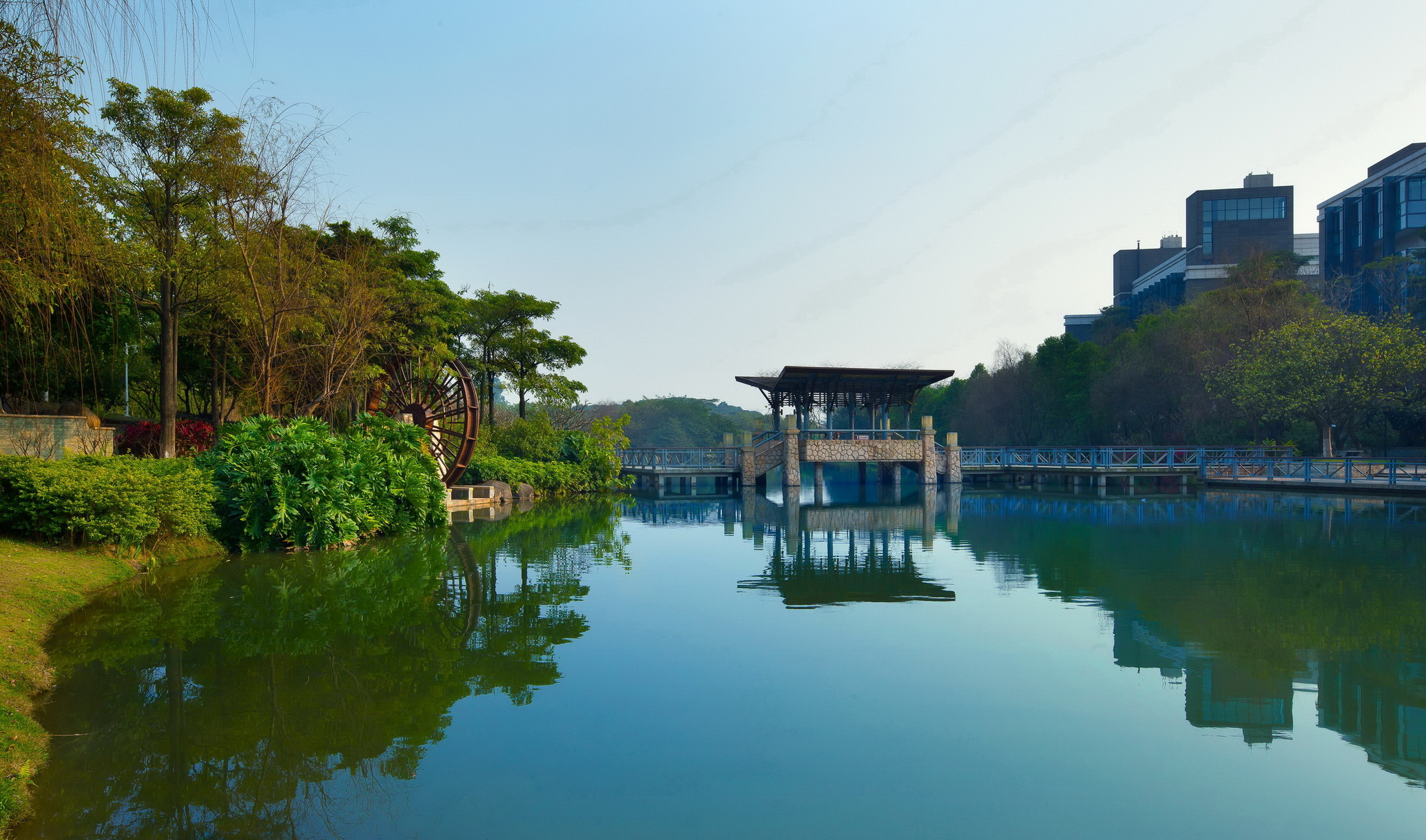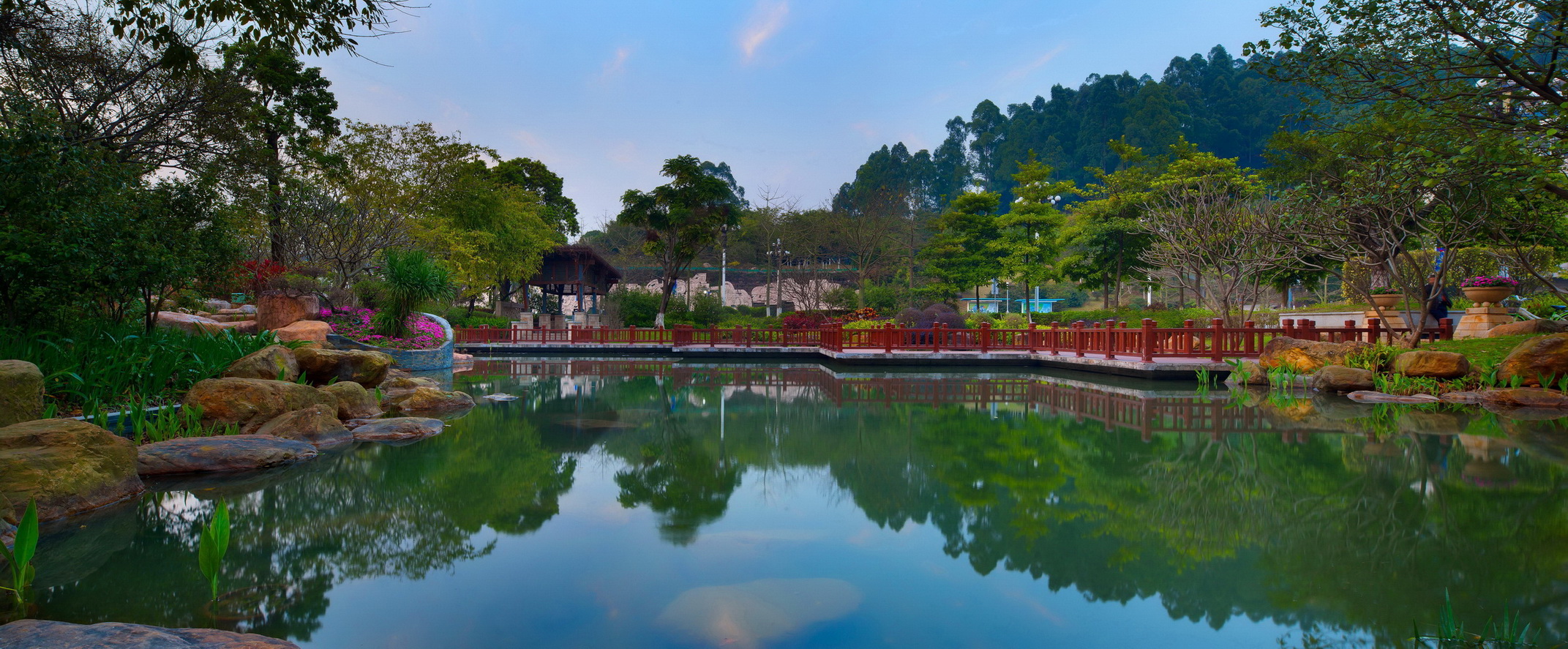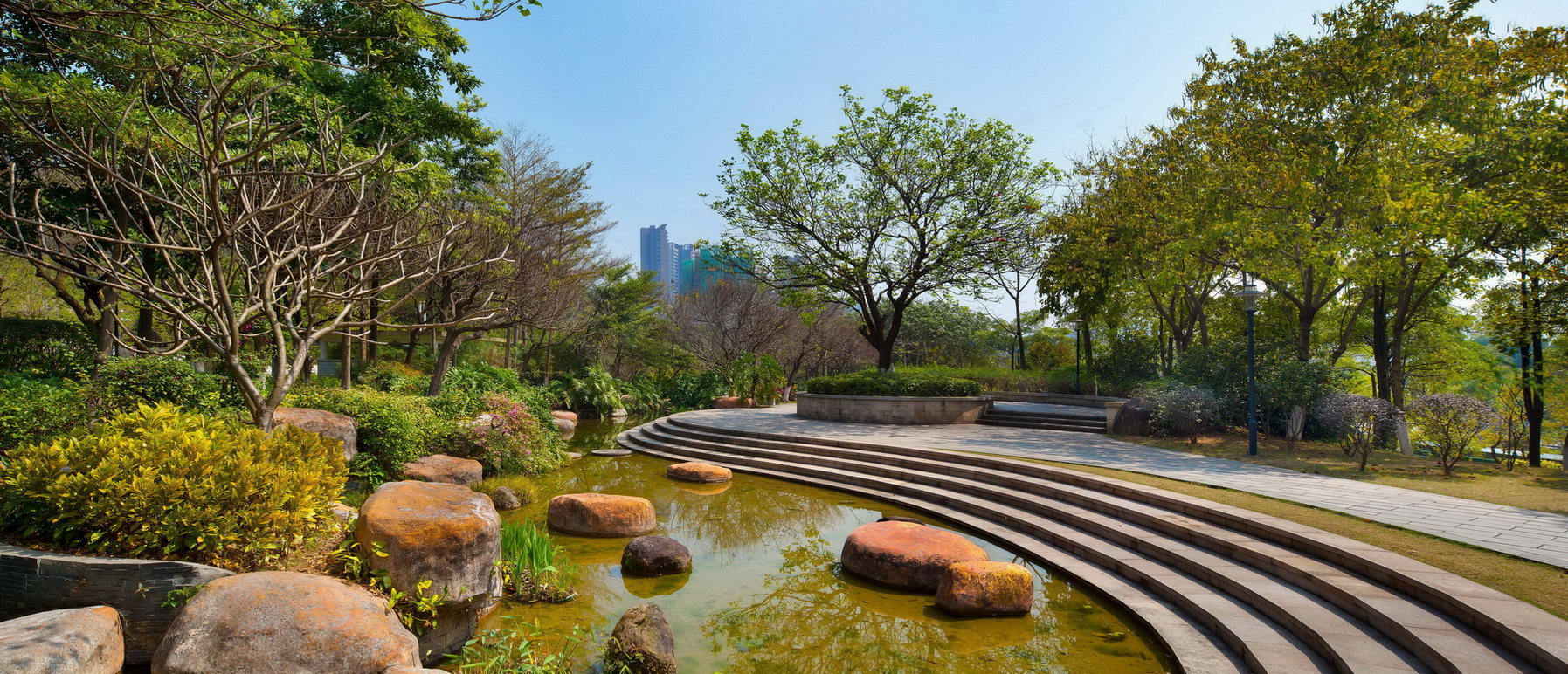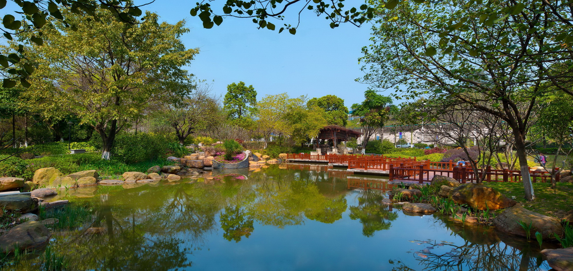 項目位于廣東省廣州市蘿崗區(qū)會議中心周邊,被稱為蘿崗會議中心的后花園。全園以“舊城新顏沁流芳”作為設(shè)計主題,以“自然和諧、生態(tài)優(yōu)先”為基本設(shè)計理念,通過現(xiàn)代設(shè)計手法,將市民的休閑活動融合在“自然、和諧”的環(huán)境中,體現(xiàn)人與自然和諧共存的發(fā)展觀。作為蘿崗核心區(qū)位置的“綠肺”,項目擁有10萬平方米水體和5萬平方米綠地的綜合性公園,做到了建筑讓位于綠化,局部設(shè)計精細而考究。其主要有亮點,第一,克服了場地舊魚塘大面積軟弱基礎(chǔ)(主要為淤泥)的施工不利條件,使用多項專業(yè)技術(shù)成功解決三方面的工程難題:包括合理的植物栽植、安全穩(wěn)固的建筑物和構(gòu)筑物土建工程、可靠的泄洪和防洪工程。第二,通過協(xié)調(diào)各方意見,實現(xiàn)了市民使用、政府領(lǐng)導(dǎo)、城市發(fā)展三方共贏的局面。