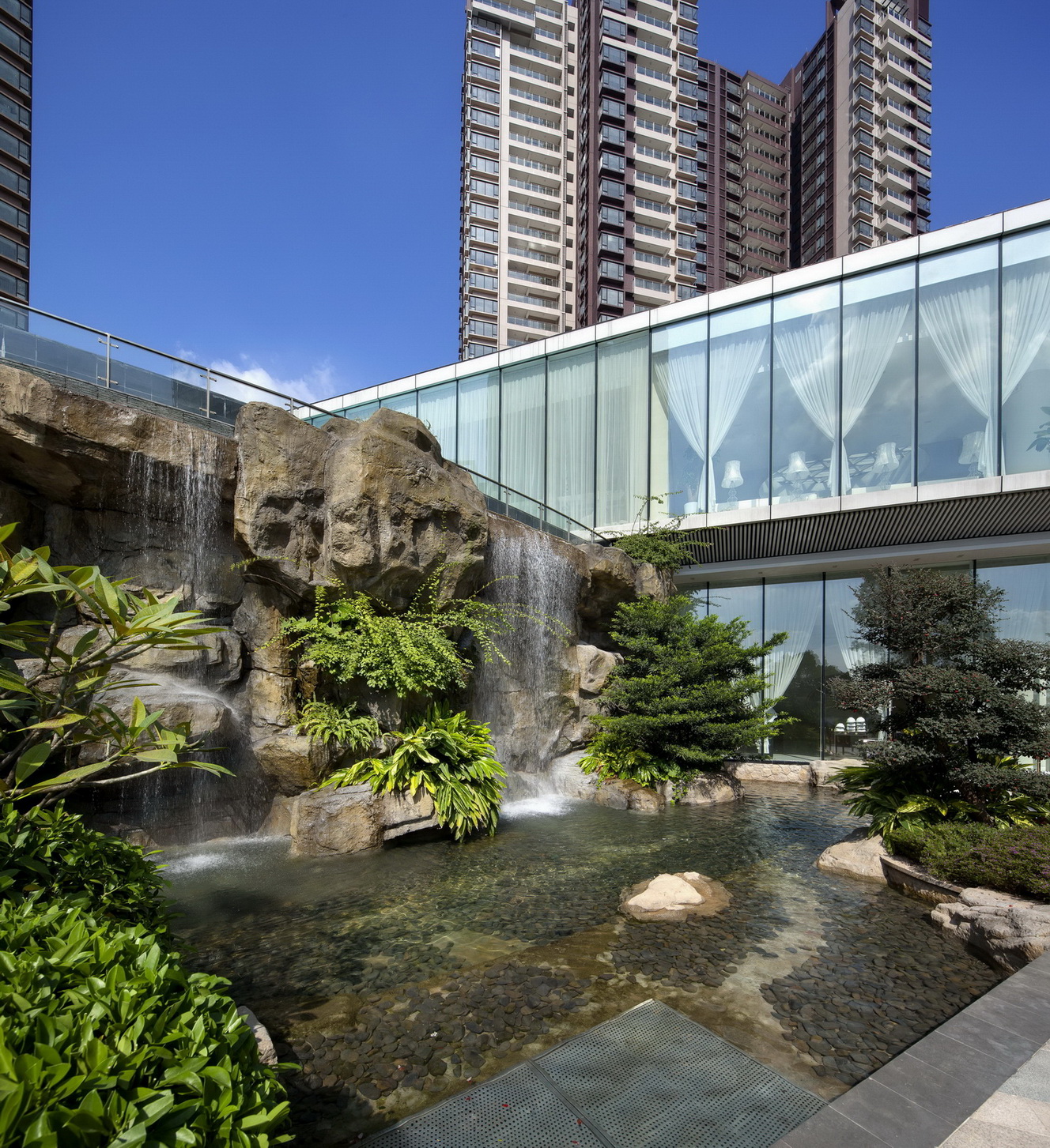 新福港鼎峰位于科學(xué)城核心區(qū)蘿崗區(qū)政府,NBA國際演藝中心對(duì)面,是廣州首個(gè)半山坡地豪宅。首層住戶大堂距離外面道路有30多米高差,氣勢(shì)磅礴的疊水瀑布傾瀉而下,園林觀光直通梯從地面直通水上會(huì)所。作為頂尖的高級(jí)住宅社區(qū),住戶可私享兩座半山之上,水岸之邊的國際藝術(shù)會(huì)所,廣州首個(gè)私家畫廊,親水園林和私家山體公園,同時(shí)小區(qū)內(nèi)還設(shè)有約三萬平方米的配套商業(yè),配備有幼兒園、文化活動(dòng)站、老人活動(dòng)中心、肉菜市場(chǎng)、衛(wèi)生站等設(shè)施。