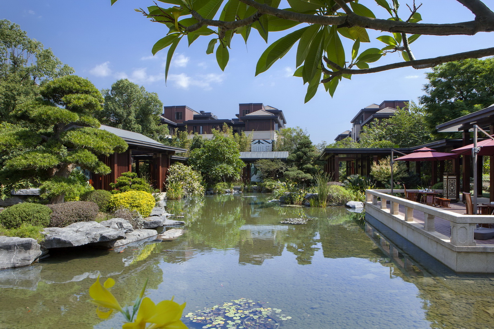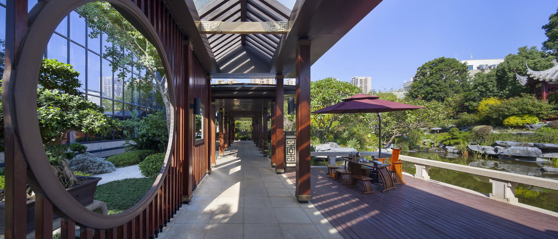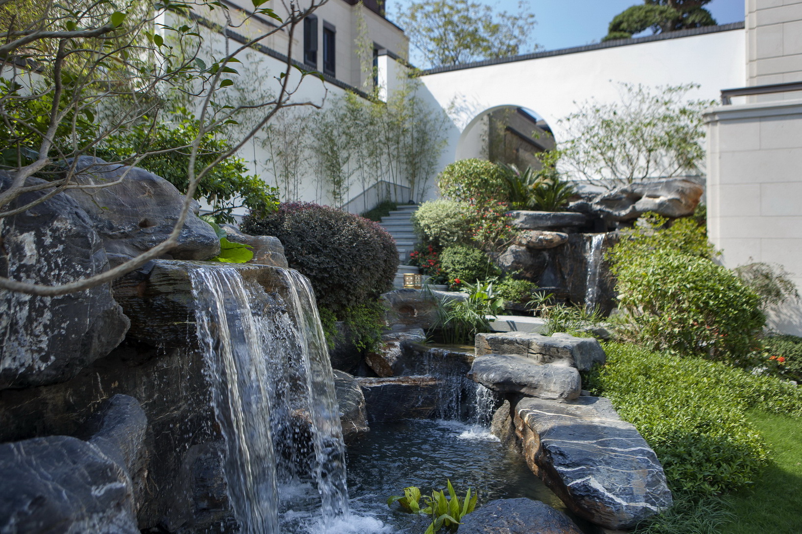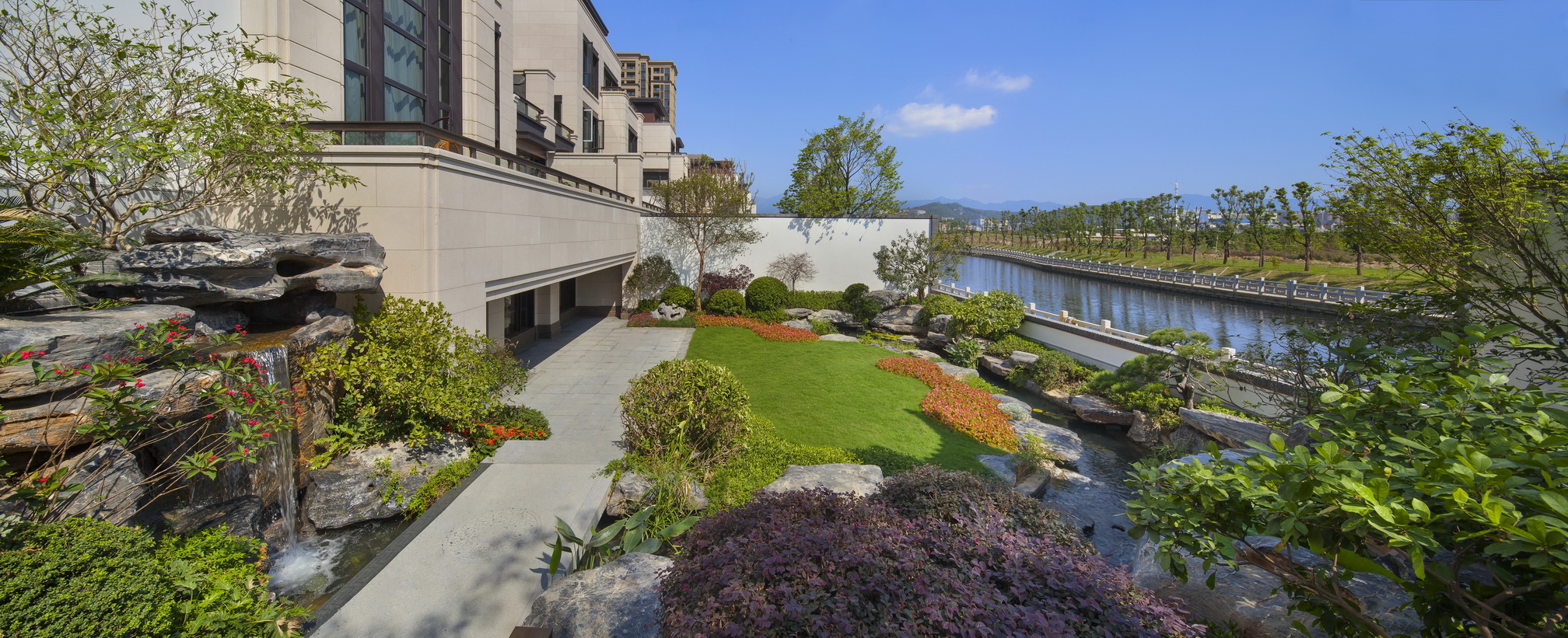 項目位于福州市倉山區(qū)螺洲鎮(zhèn),展示區(qū)施工面積約為12000平方,是泰禾集團(tuán)中國院子系列產(chǎn)品。定位為新中式風(fēng)格。通過亭、廊、榭、疊石等中國元素的創(chuàng)新運用,配以水景、霧噴、中式圍墻、門樓及各種奇花異草的融合搭配,營造出美侖美煥的中國山水畫卷韻味,給人以身在畫中的感覺。