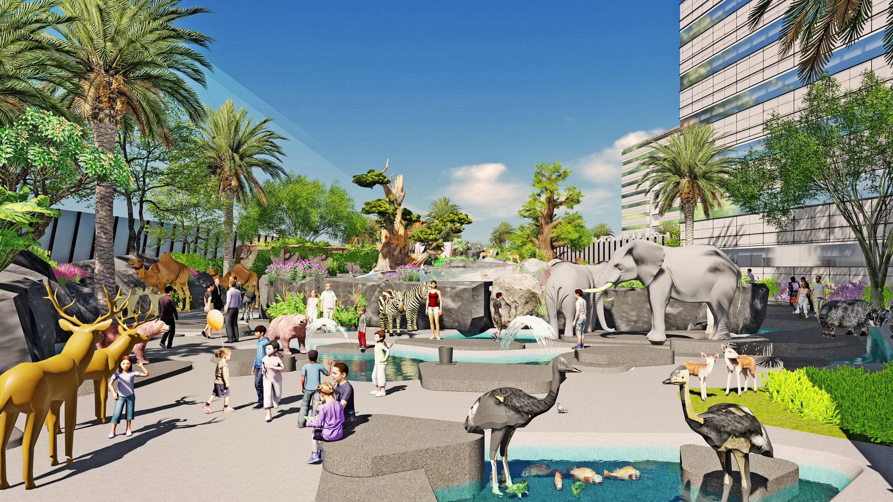 整體設(shè)計(jì)以諾亞方舟為主題,項(xiàng)目通過(guò)對(duì)方舟在海洋上航行與停泊的聯(lián)想來(lái)設(shè)計(jì)安華匯的景觀布局與各功能區(qū),形似諾亞方舟的建筑體周邊景觀利用淺灘礁石與海浪波紋為衍生,闡述了“回到新紀(jì)元到來(lái)的一刻,找回美好生活的意義”的主題。