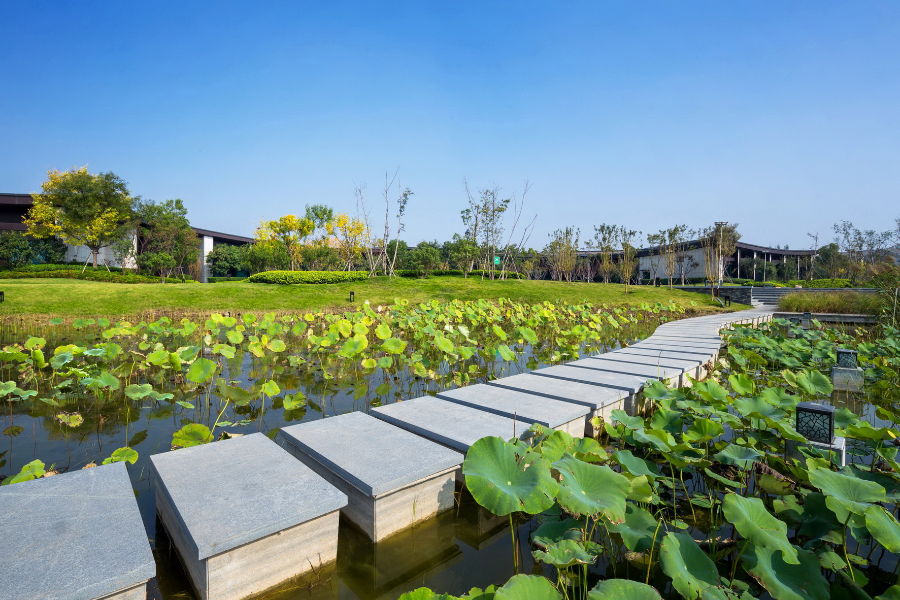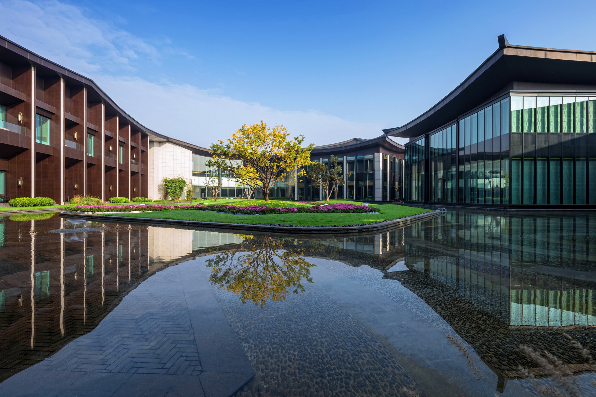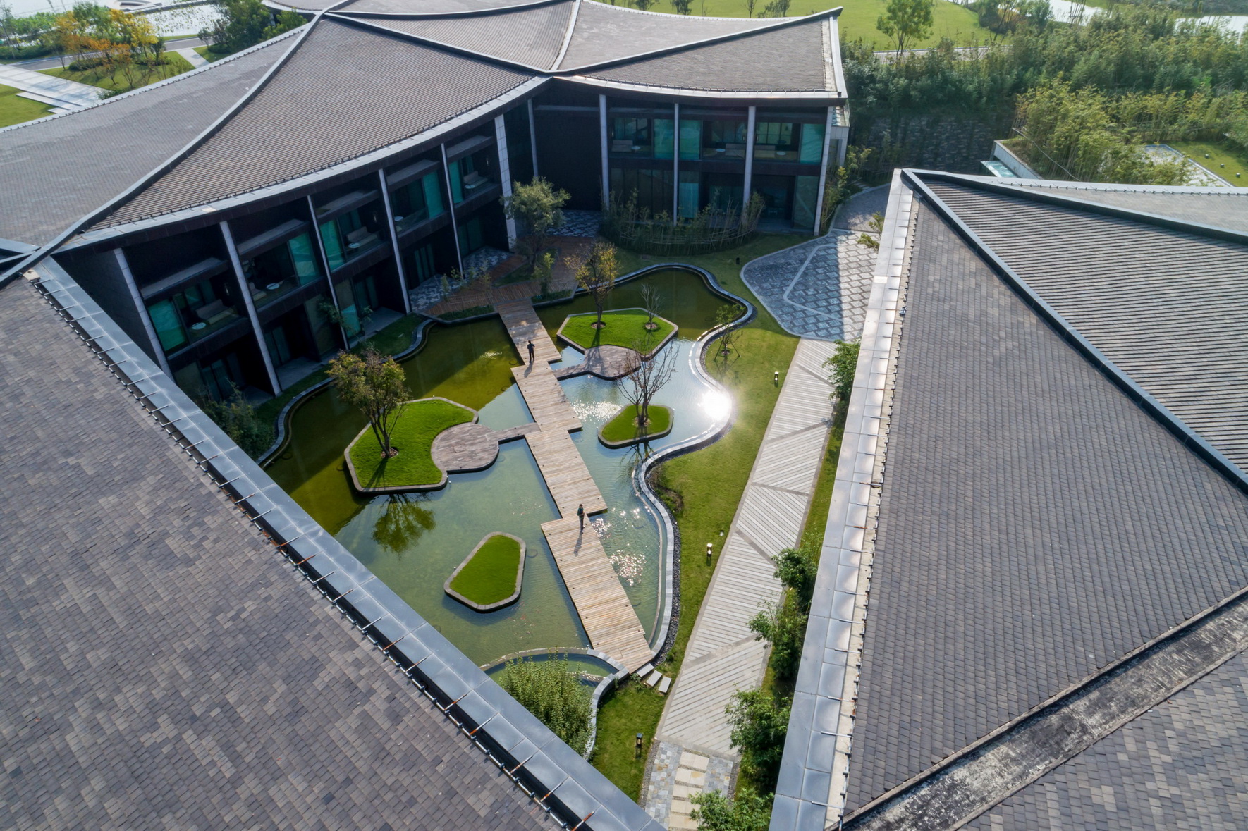 開封建業(yè)鉑爾曼酒店坐落于北宋古都開封古城墻內(nèi),毗鄰著名景點(diǎn)清明上河園。項(xiàng)目延續(xù)開封水文化,以院落與坡屋面為主題,將"水院"思路貫串設(shè)計(jì)始終,傾力打造新時期"宋韻"文化背景下的主題酒店。景觀打造從中國傳統(tǒng)的建筑理念與現(xiàn)代設(shè)計(jì)風(fēng)格入手,以古城為背景,將交錯的湖泊與精致的花園相結(jié)合,營造自然景觀與人文景觀和諧統(tǒng)一的主題生態(tài)度假酒店,再現(xiàn)開封六朝古都的歷史人文風(fēng)采。