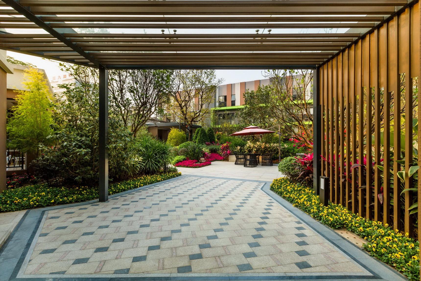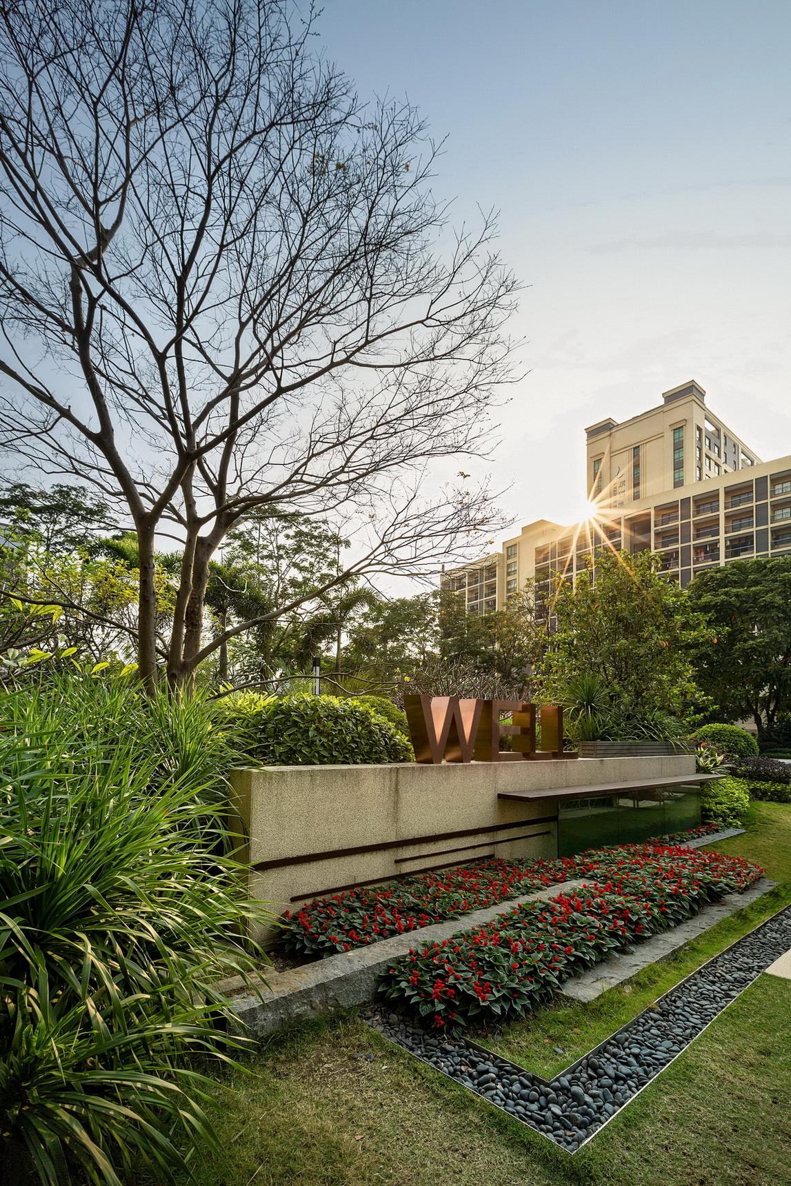 項目定位為健康生活環(huán)境與生活配套高度融合的高品質(zhì)健康人居社區(qū)。因地制宜,利用場地內(nèi)多棵大樹,搭配疏密有致的中下層,使綠化空間層次分明、大氣非凡。在地形塑造過程中,充分考慮不破壞原生態(tài)的情況下,盡量根據(jù)建筑物室內(nèi)標高、道路標高及山體標高相結(jié)合并進一步考慮周邊地形特色,使其富于變化,產(chǎn)生良好的視覺效果。細節(jié)至上,施工前進行整體排版,務求做到每塊石材都對縫,不出現(xiàn)小角陰角等問題,簡單的做法也做得精致,重點部分如水景景墻也效果出眾。