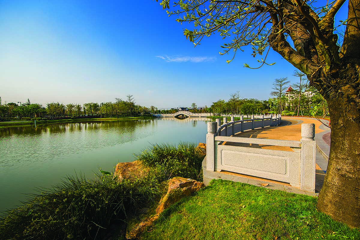 映月湖公園位于桂城平洲片區(qū),以西城涌為引水河涌,通過(guò)新建河涌引水至映月公園一期,最終接入三圣河,全長(zhǎng)約4.2公里。項(xiàng)目建成后將實(shí)現(xiàn)平洲片區(qū)活水繞城,提升水西片區(qū)內(nèi)居住環(huán)境及提高城市綜合環(huán)境升級(jí)。 項(xiàng)目分為兩期實(shí)施,一期為湖體景觀工程,二期為水網(wǎng)工程。公園占地面積約128427平方米,以“月亮”為主題,“三湖兩堤”為架構(gòu),營(yíng)造一個(gè)生態(tài)自然,格調(diào)高雅的綠地公園。項(xiàng)目建設(shè)景觀橋梁6座,設(shè)置了3個(gè)特色觀花小島,分別為櫻花島、宮粉紫荊島、黃花風(fēng)鈴木島,通過(guò)木棧道連接小島,營(yíng)造一種舒適的濱水景觀,公園通過(guò)星光主軸、舞臺(tái)廣場(chǎng)、月亮橋、月亮景墻、景觀廊架、兒童樂(lè)園、流線花階等特色節(jié)點(diǎn)的打造,為市民提供一個(gè)尤其上完,休閑娛樂(lè)的城市綠地開(kāi)放空間。