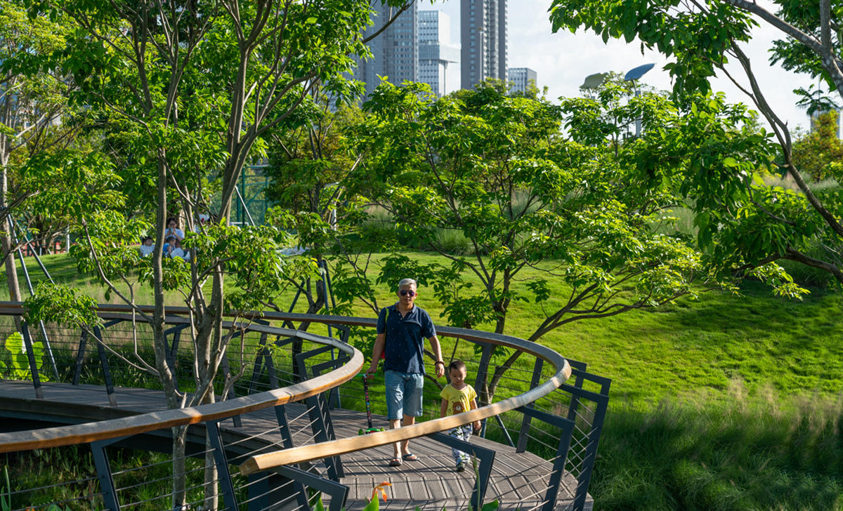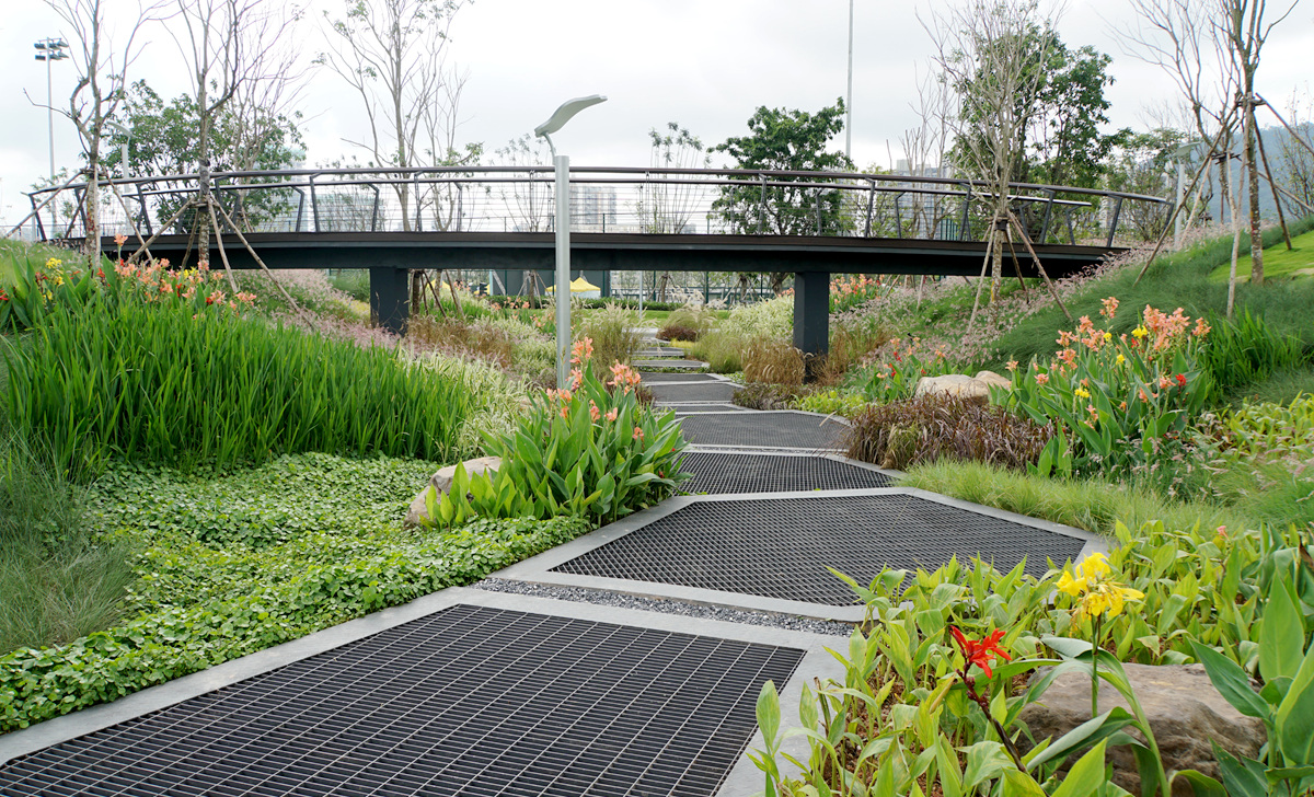前海運動公園是以運動健身為主題的城市綜合性公園,定位為現(xiàn)代自然式園林。園內(nèi)共計種植喬木513株、灌木748株、綠地5.7萬m2,營造出自然、和諧的生態(tài)效果;結合海綿城市設計理念,形成舒朗通透的現(xiàn)代運動景觀;同時,項目擁有較完備的體育運動設施及健身場所,為周邊居民提供了一個高品質的健身休閑場所。