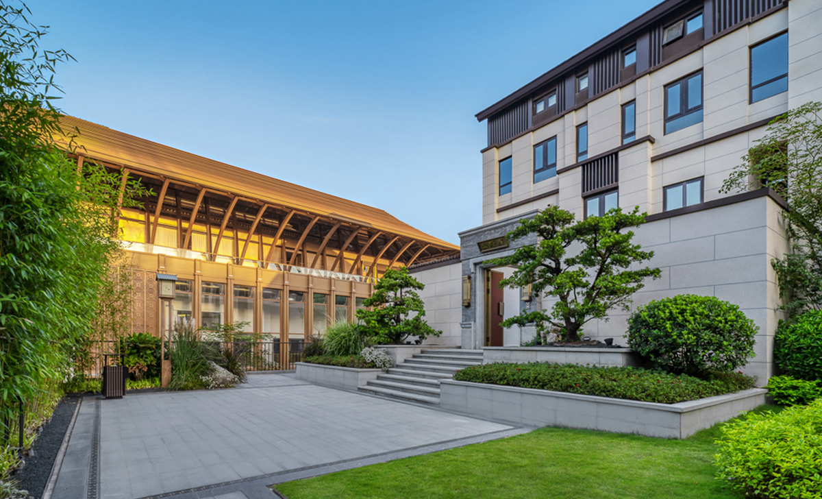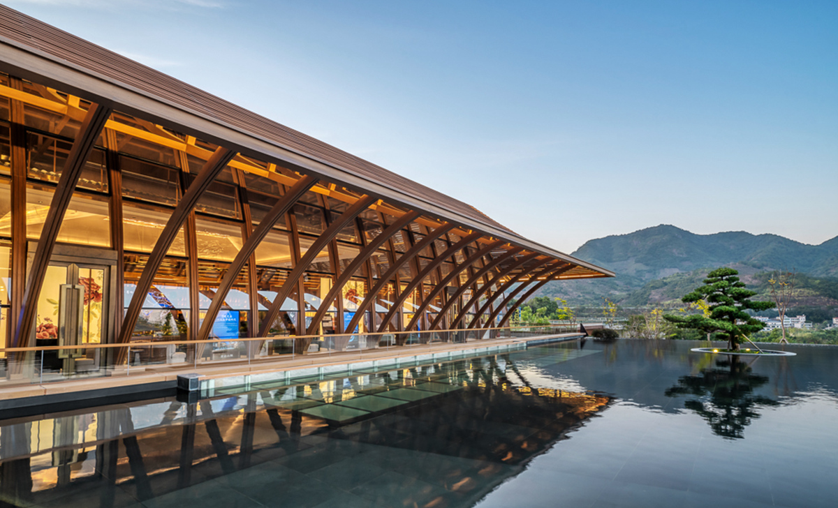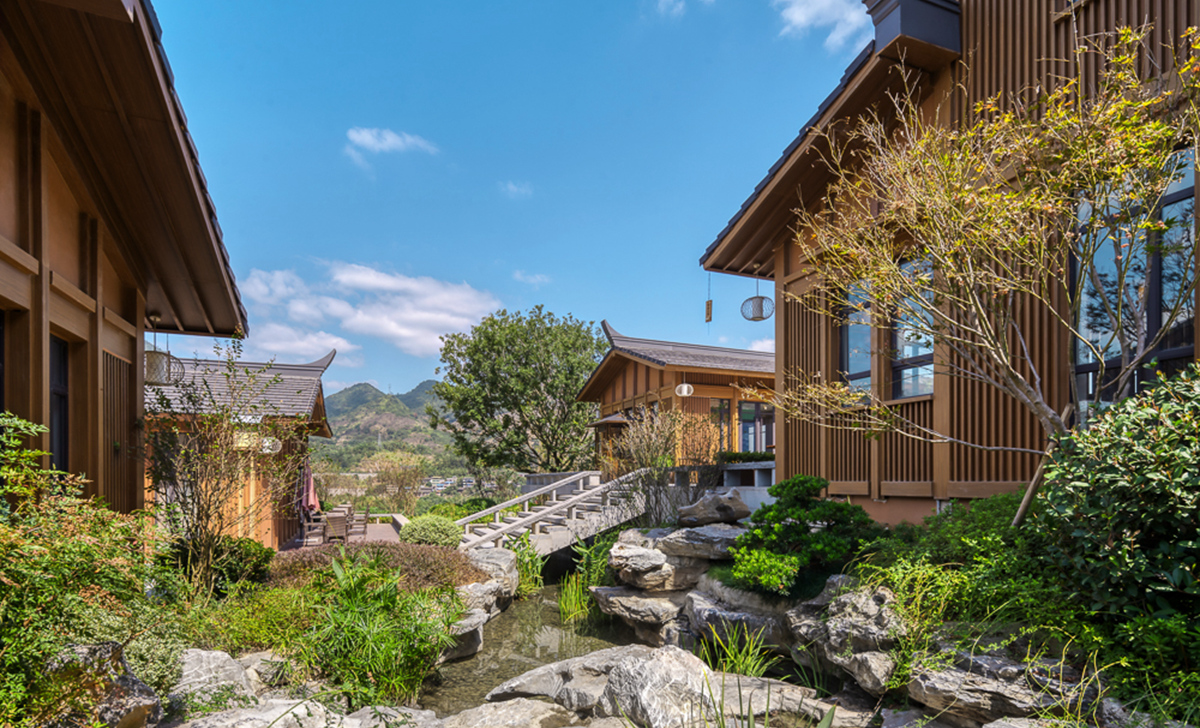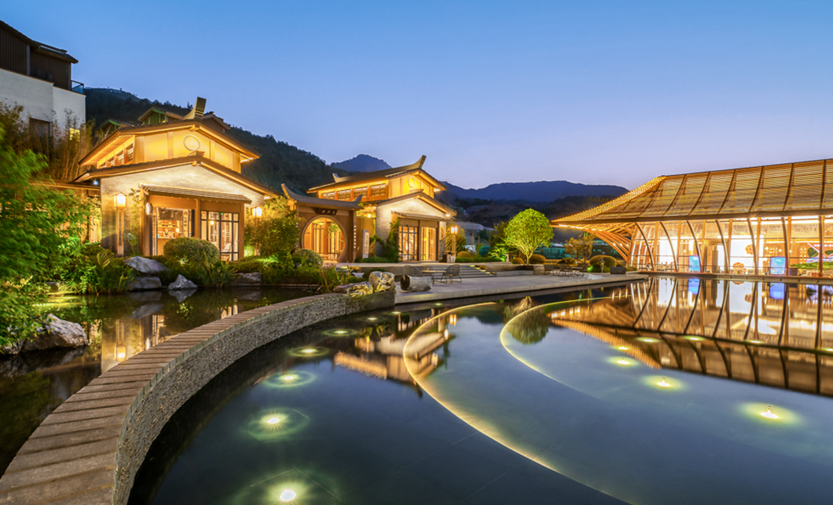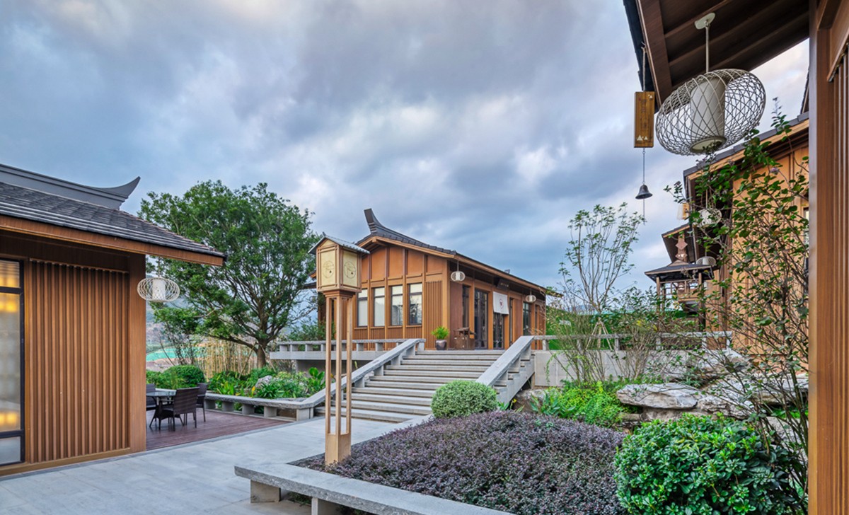 福州泰禾青云小鎮(zhèn)是福州唯一一個以中式院落文化為基礎(chǔ)的小鎮(zhèn)項目。項目三面環(huán)山,一面臨水,景觀整體以“山水院子,中式文化”為設(shè)計主題,采用景觀遞進和移步換景的手法,循山造景,引水入園。室外的亭、廊、觀景臺、眺望臺等半室外空間依水而建,頗有小橋流水人家之境。舒展開闊的線條,模糊了水景、園路、眺臺、連廊等室內(nèi)外空間的界限,將環(huán)境融入建筑,強化空間感受。