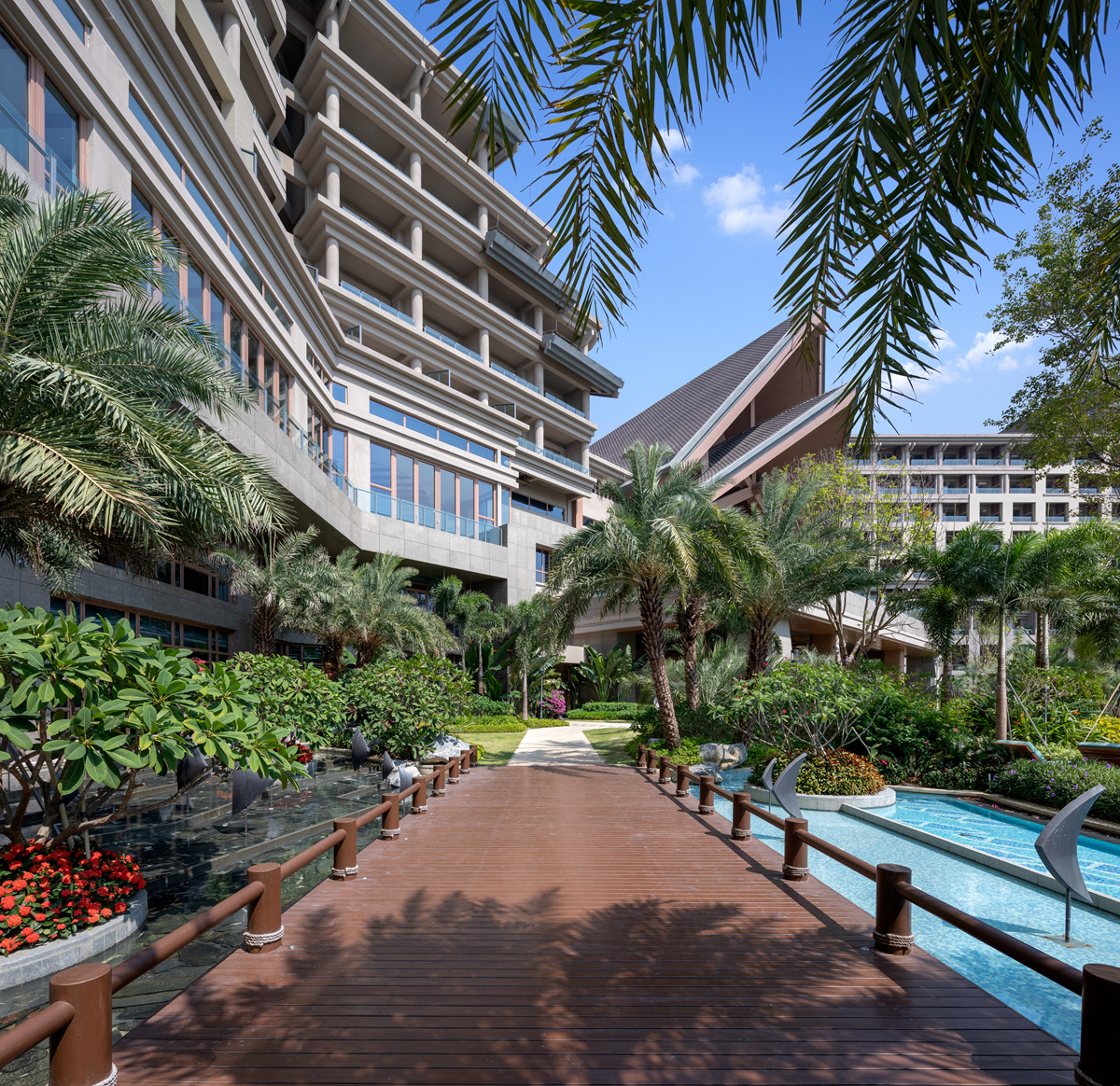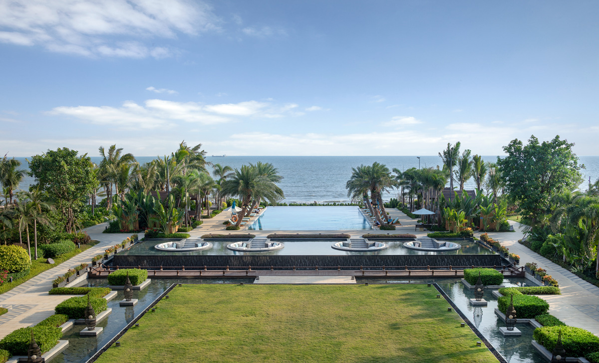 汕尾保利希爾頓逸林酒店是首家入駐汕尾市的國際品牌酒店。項(xiàng)目依海而建,隨海之型,以大堂為中心,兩邊建筑呈“Y字形分布,拉長海景體驗(yàn)線,立足于詮釋現(xiàn)代休閑度假方式。在景觀布局上,盡最大可能減少酒店景觀對自然景觀的破壞,讓酒店充分利用自然環(huán)境和資源,與自然和諧共處。