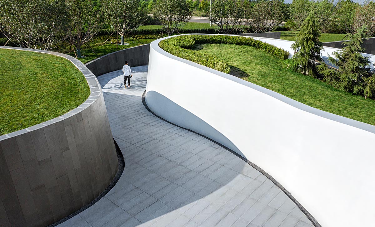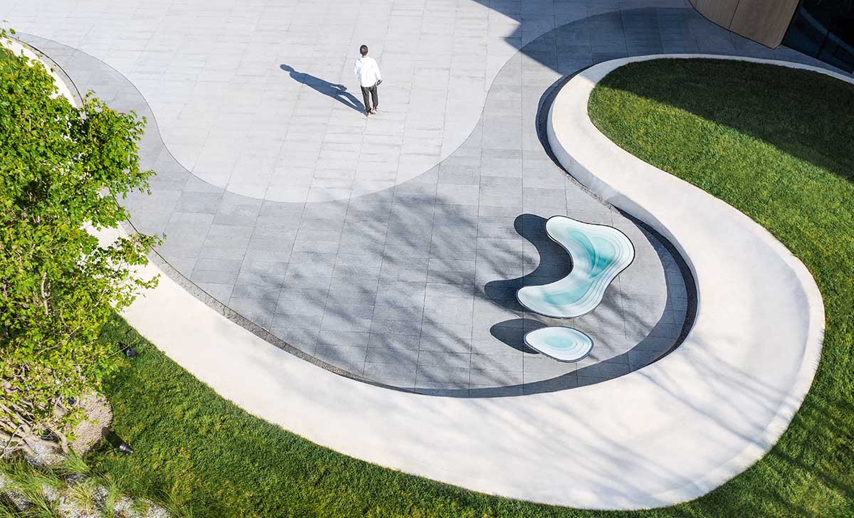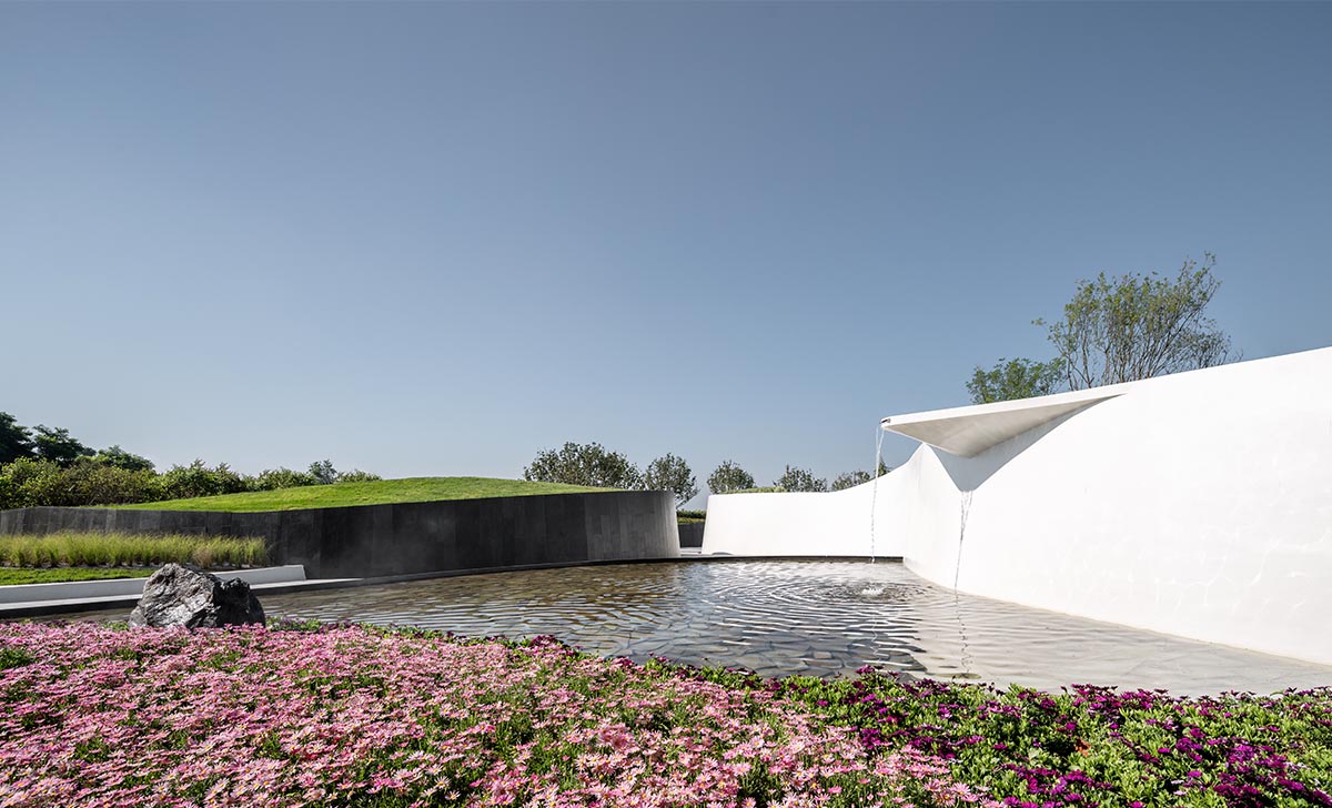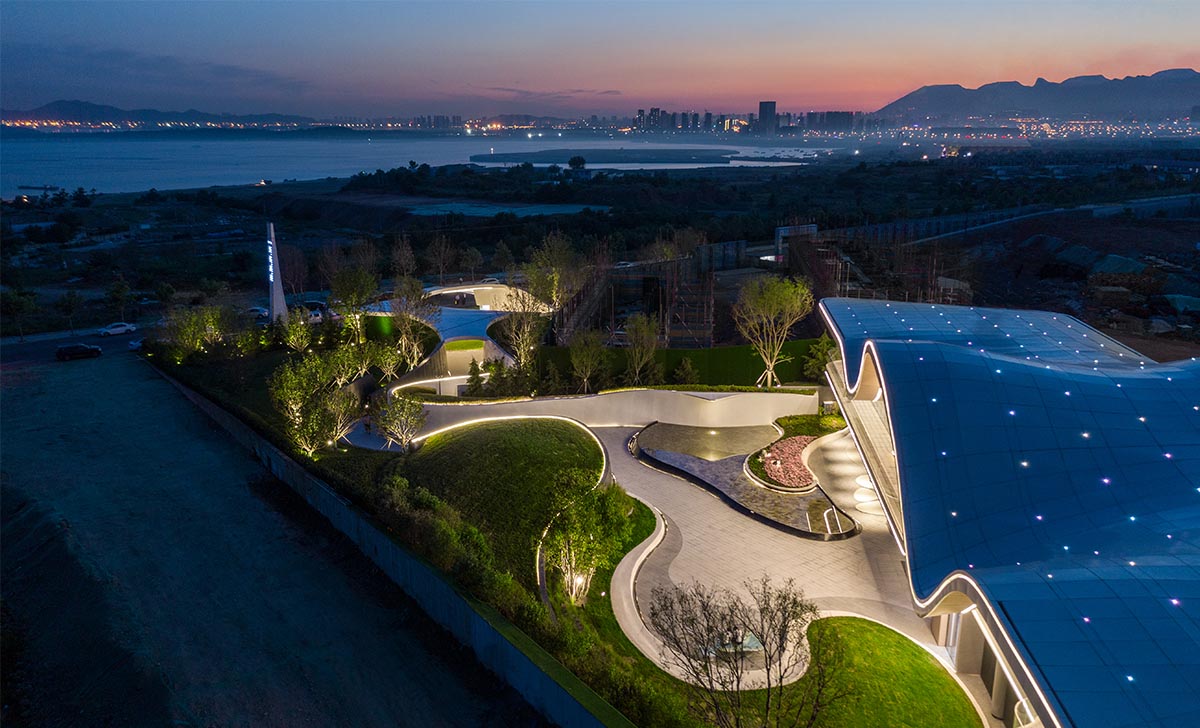 項(xiàng)目位于大連市金普新區(qū)黃海之濱,擁享小窯灣優(yōu)質(zhì)的山海資源。示范區(qū)景觀設(shè)計(jì)將人們對(duì)山、海、夢(mèng)的感知與想象無限放大,于 “天光云影,搖蕩波瀾”的場(chǎng)景中汲取靈感,以極簡(jiǎn)的線條、流暢的曲線以及細(xì)節(jié)的點(diǎn)綴,將浪的輕盈、海的純粹以及山的張力與景觀充分融合,演繹出了“一山—?!恰钡睦硐敫窬?。