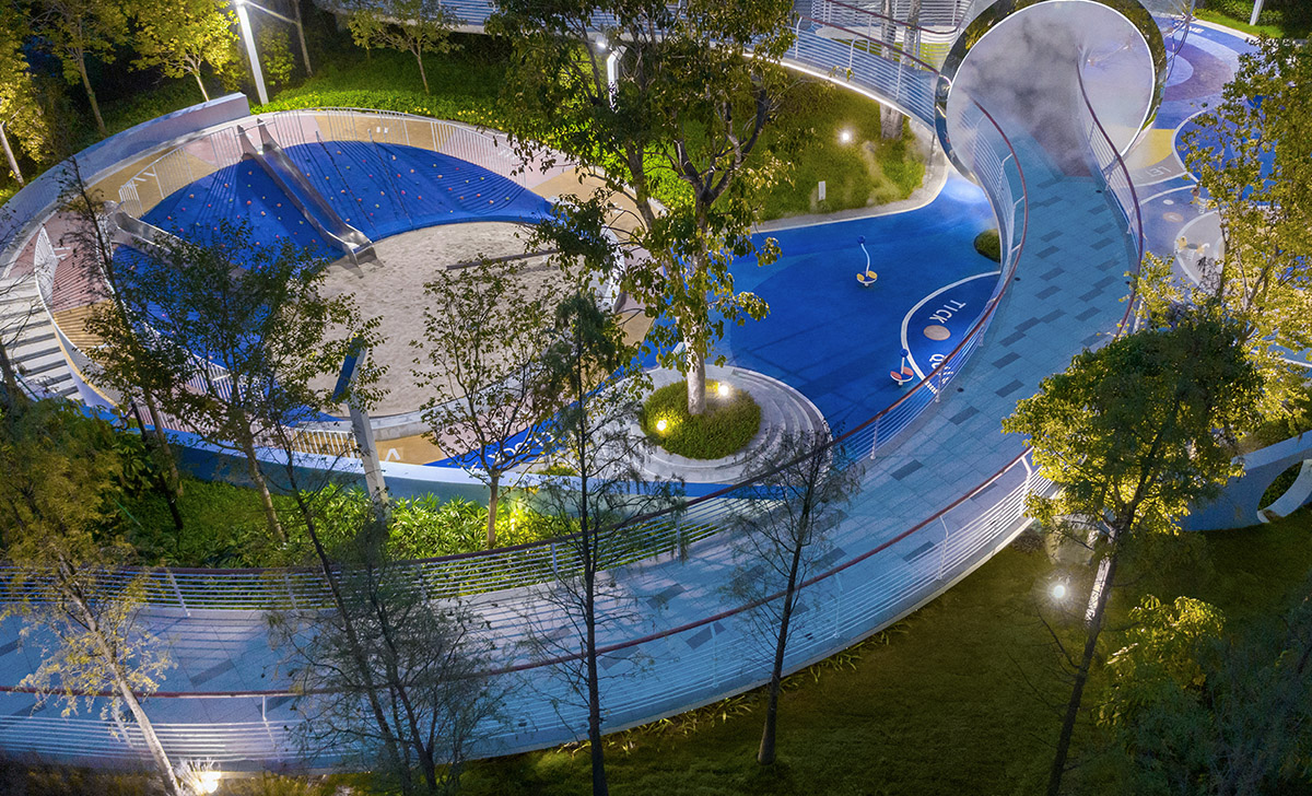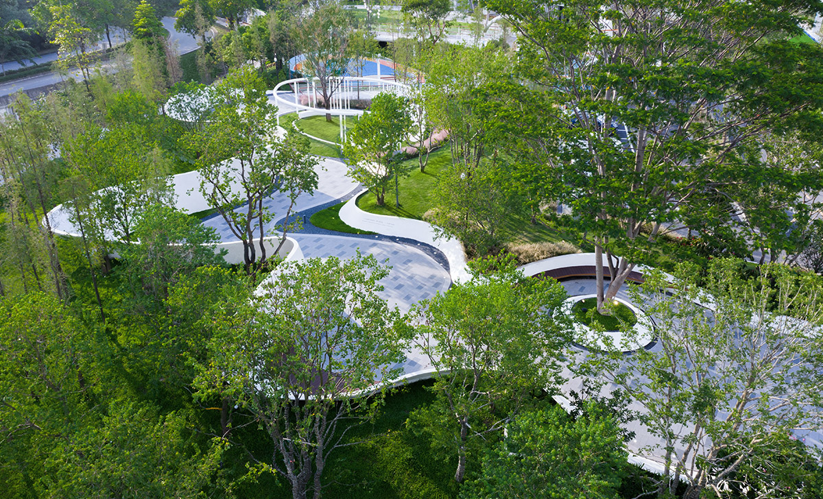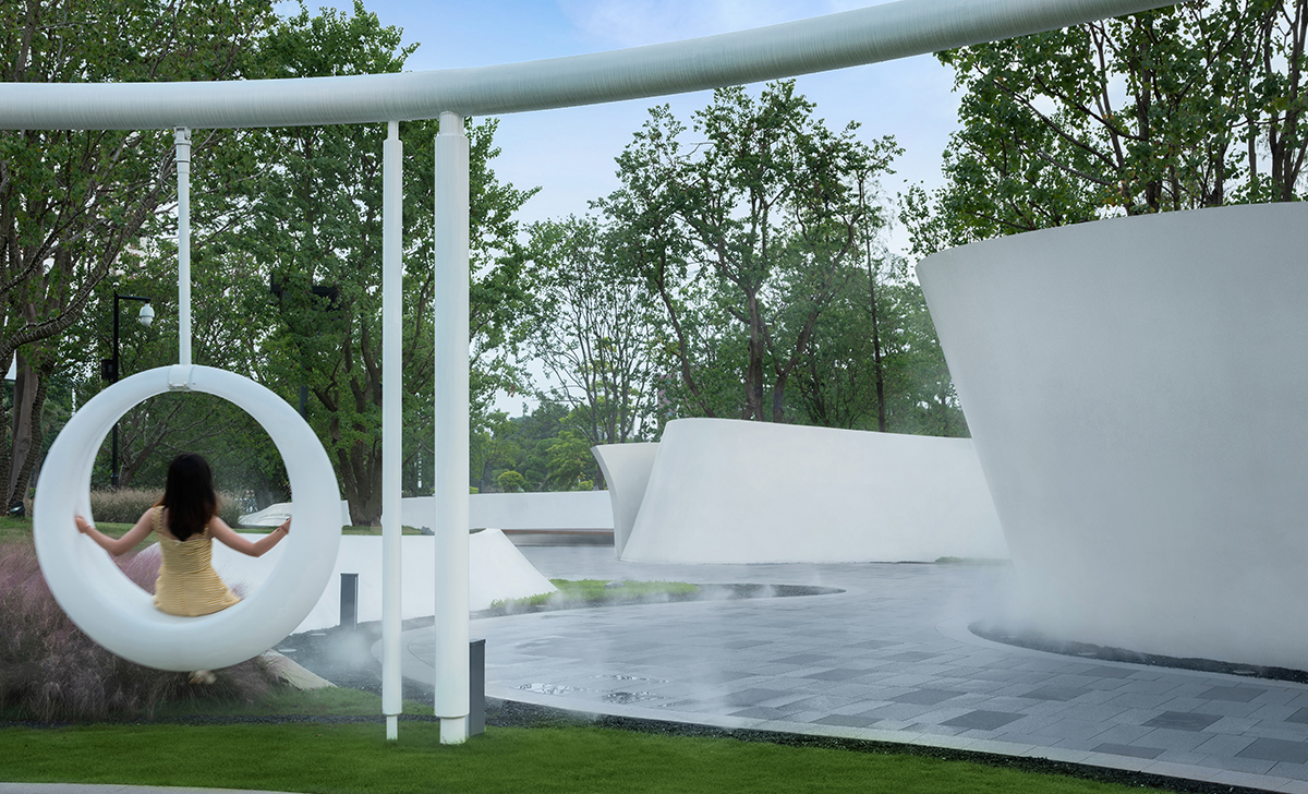 聯(lián)動(dòng)“時(shí)光”給我們的創(chuàng)意腳本,將“時(shí)光”這一抽象概念具象化,由此發(fā)散成多元化的功能落點(diǎn),對(duì)公園進(jìn)行功能配置,與此同時(shí)將“時(shí)光”高度抽象化成流暢的曲線。通過用多樣的“時(shí)光”曲線容器承載不同的功能分區(qū),以時(shí)光碎片、時(shí)光隧道、時(shí)光秋千、時(shí)光的橋、時(shí)光樂園等節(jié)點(diǎn)設(shè)置,打造多功能、多互動(dòng)的趣味公園,并利用高差營造多維度、多尺度的空間氛圍。時(shí)間將會(huì)給景觀場(chǎng)地帶來斑駁的痕跡,我們用景觀詮釋時(shí)光的意義,善待時(shí)光給我們的禮物,讓景觀成為時(shí)光的朋友。