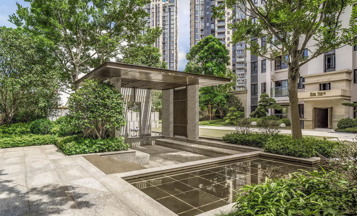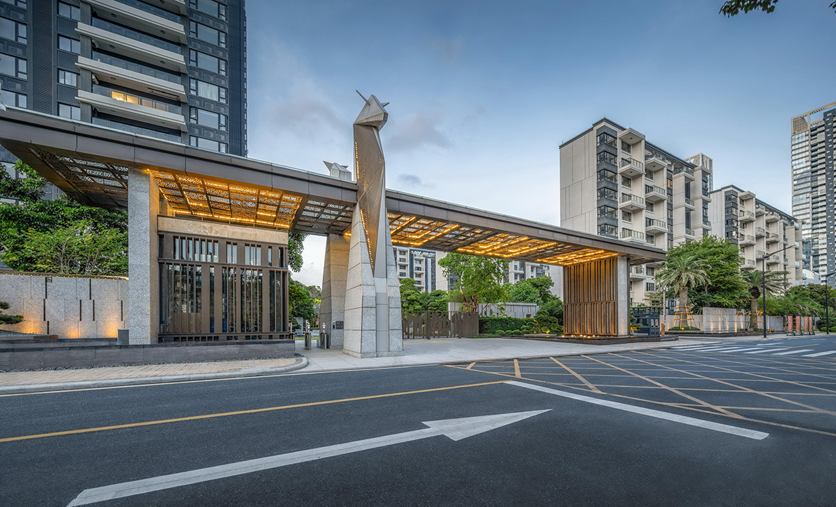 珠海悅瀾山大區(qū)充分考慮不同人群的景觀需求,通過現(xiàn)代化的設(shè)計手法和合理化的空間布局,打造了集觀賞、休閑、娛樂于一體的景觀環(huán)境。景觀造型設(shè)計將古代神話的化身——海馬進行演化變形,置于主入口及細(xì)節(jié)之處,寓意著吉祥與幸福。景觀設(shè)計中利用鏤空廊架、藝術(shù)景墻的巧妙分隔來豐富空間的層次,通過大膽的色彩鋪裝傳遞歸家的幸福與喜悅之情。