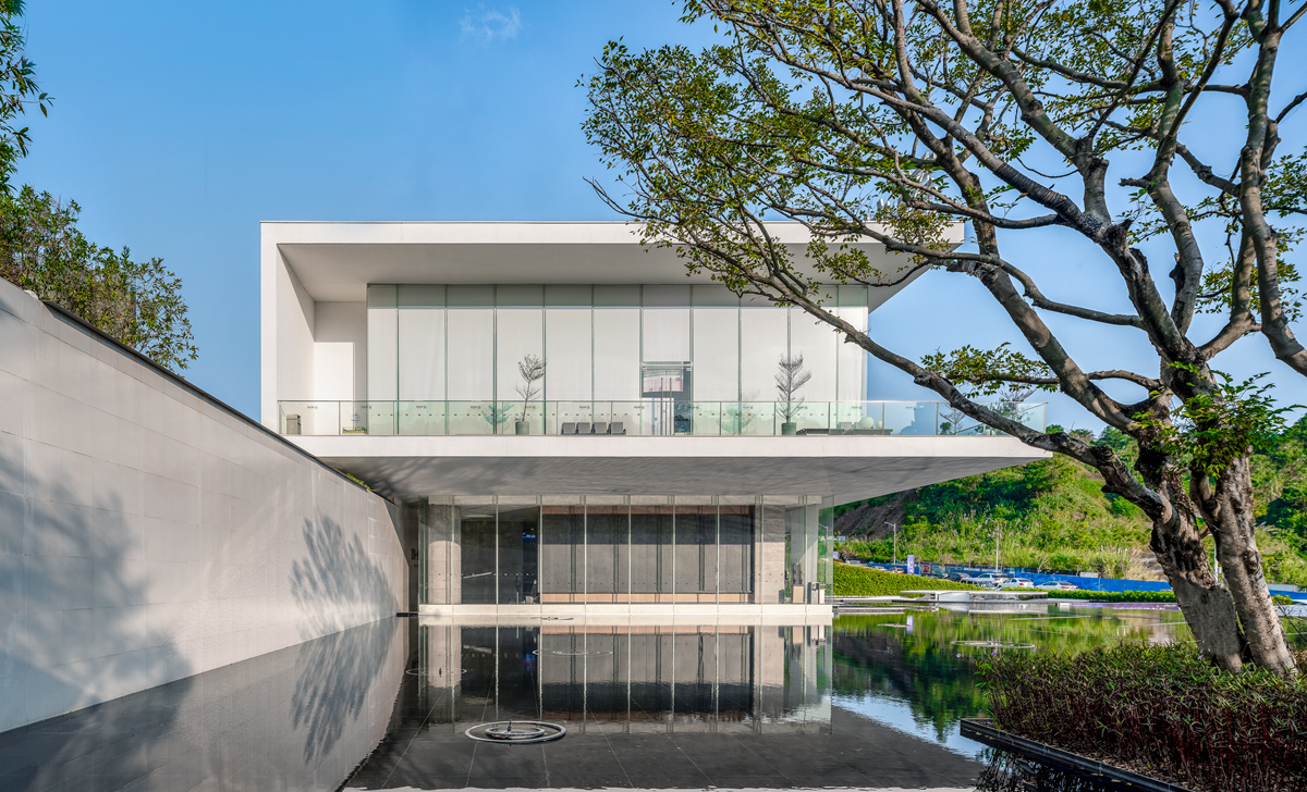 梧州美的中央廣場摒棄了復(fù)雜的外在裝飾,以一面白墻、一波碧水、一個漣漪、一葉扁舟營境,打造城市展廳獨特美感。項目重視對場所的思考,構(gòu)建和重塑著自然與人之間的角色關(guān)系,以少許勝繁復(fù),將景觀與自然環(huán)境、屬地文化高度融合,為居住者帶來“煙波浩渺,滿幅皆水”的景觀體驗。