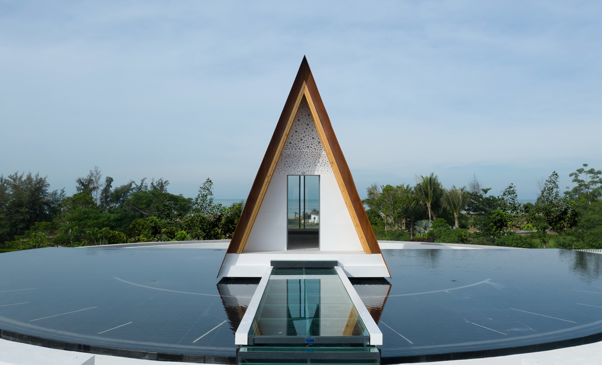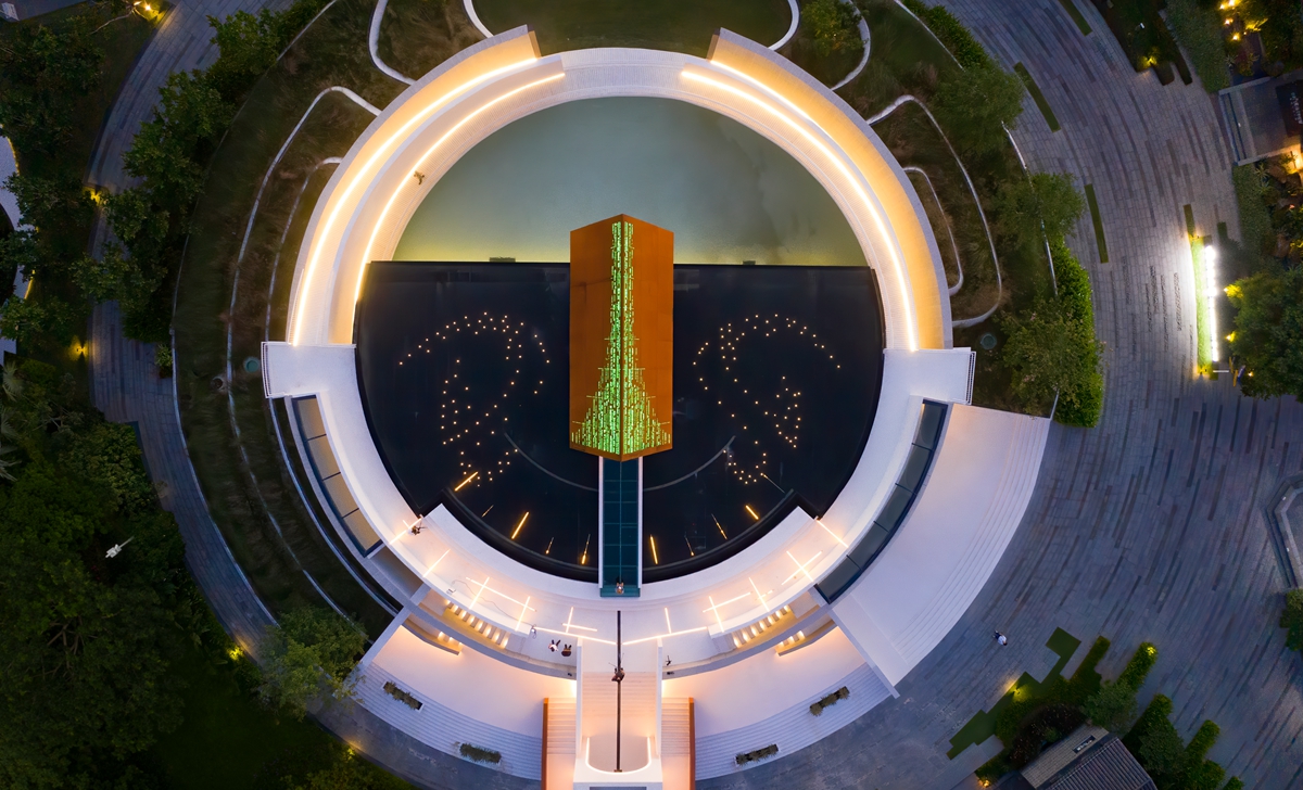 保利崖州灣科技城會議中心立于崖州海灣之濱,兼有悠長的海岸線。項目精心打造了浪漫的水景與追光旋轉禮堂,通過現代流動的藝術手法,結合崖州的海風與夕陽,構筑起浪漫度假的景觀體驗,營造出關于愛情的沉浸式體驗空間。