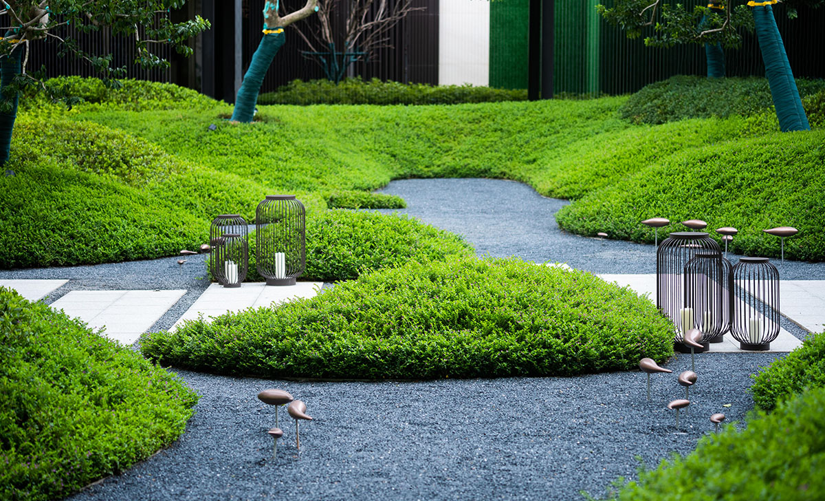 景觀主張自然味、設(shè)計(jì)品和歸屬感。 汲取了松山湖里經(jīng)典景點(diǎn)的五個(gè)意境,打造一徑五景。 結(jié)合景觀設(shè)計(jì)一個(gè)最優(yōu)的展示路徑串聯(lián)起來形成風(fēng)景畫卷, 營(yíng)造景賦的味道,讓客戶感受歸家、具備精神歸屬性的自然風(fēng)景。