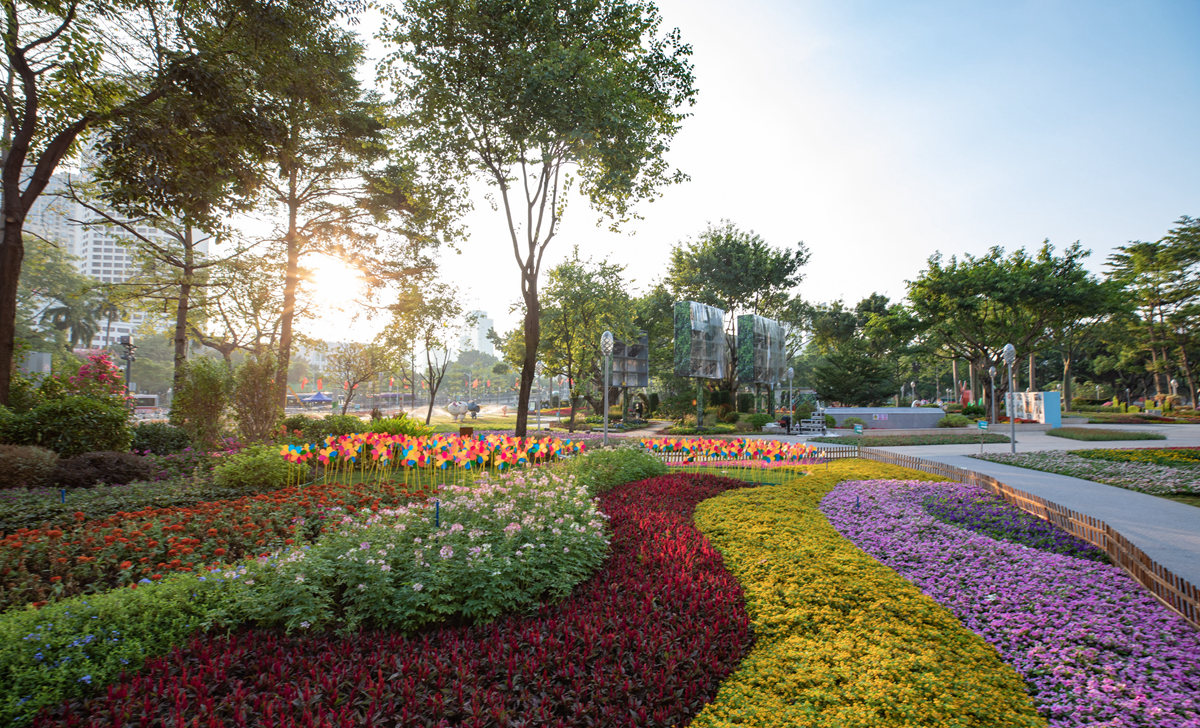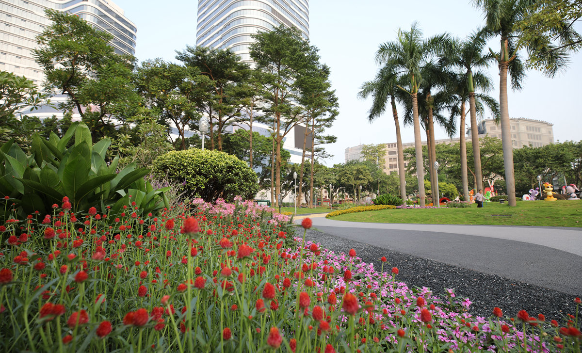 2019年,正值中華人民共和國(guó)成立70周年之際,普邦股份承接了海珠廣場(chǎng)及周邊景觀提升改造設(shè)計(jì)施工一體化。通過(guò)對(duì)海珠廣場(chǎng)及周邊景觀空間進(jìn)行提升改造,運(yùn)用海綿城市等相關(guān)技術(shù)手段,營(yíng)造疏林——草坪——花境的綠地空間,恢復(fù)海珠廣場(chǎng)作為城市中心廣場(chǎng)的功能,使其成為紅色文化傳承、門戶形象展示、市民休閑觀光、城市活動(dòng)舉辦的城市門戶空間。