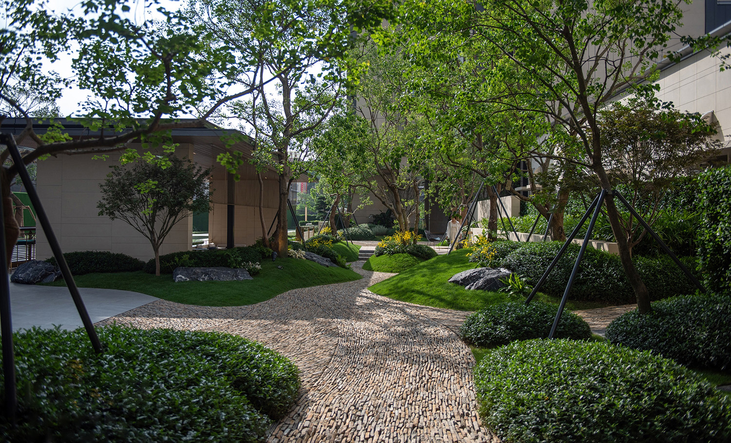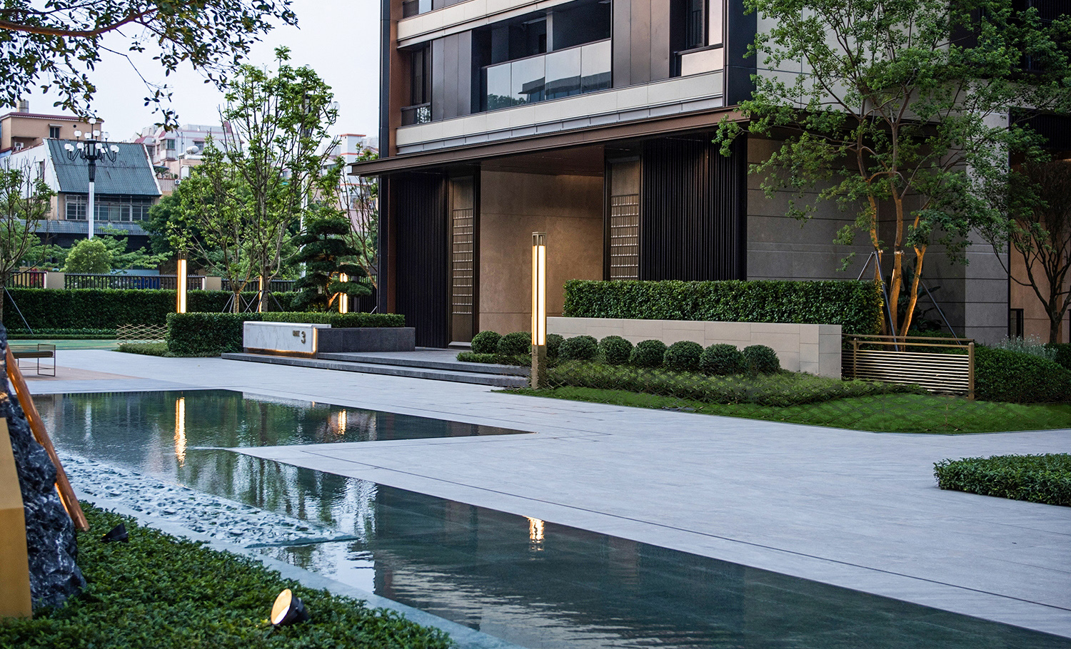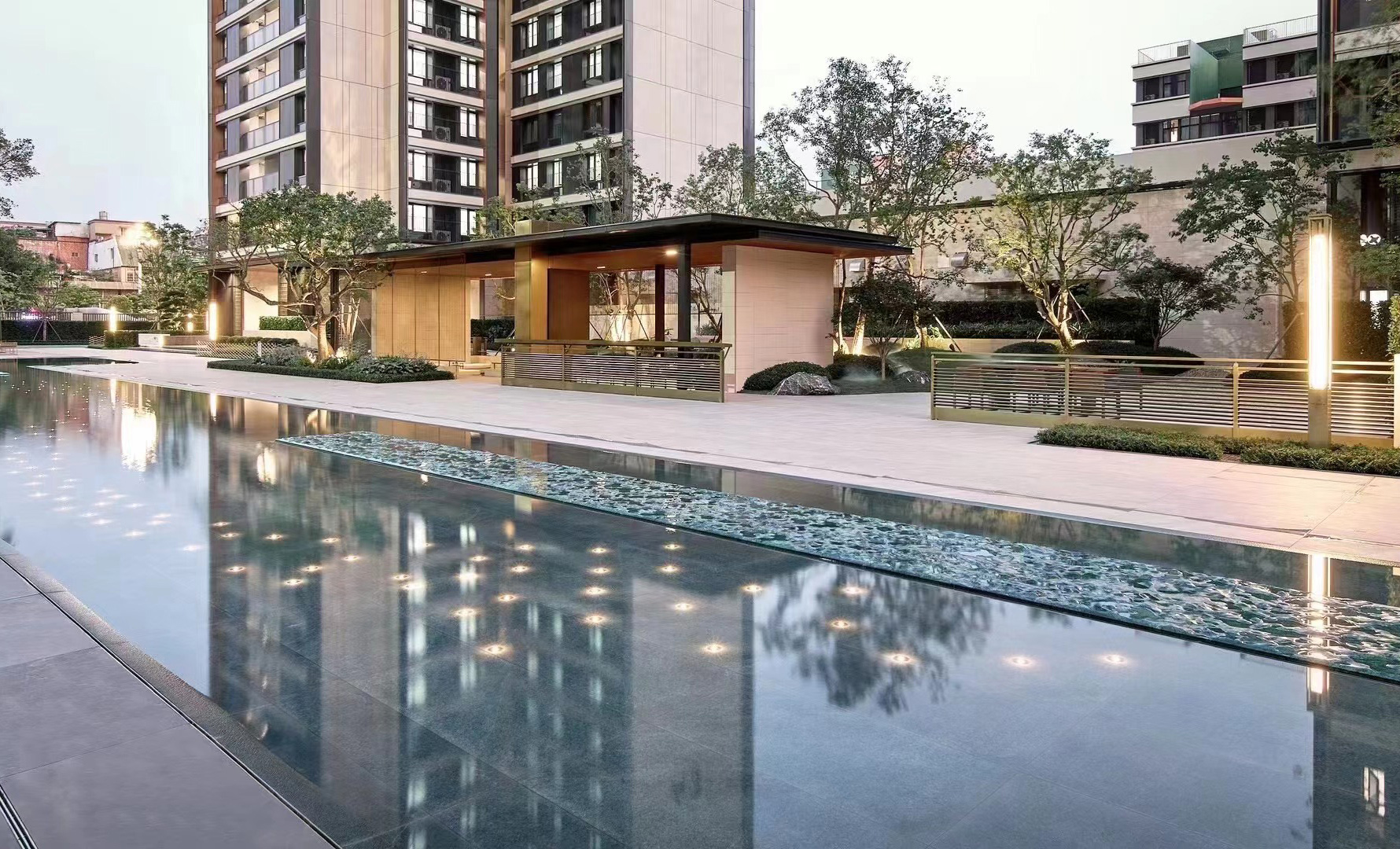 廣州萬科城市之光位于廣州老黃埔核心區(qū),是廣州萬科首個城市更新項目。本項目南A地塊景觀圍繞“居住品質感”貫徹了設計工程的一體化,從設計、選材、工藝工法全面拉齊。用居住大區(qū)的成本投入,打磨奢享生活的氛圍一體化帶來的前后端對齊與全面交圈,也在突破更高品質場景的可能性。