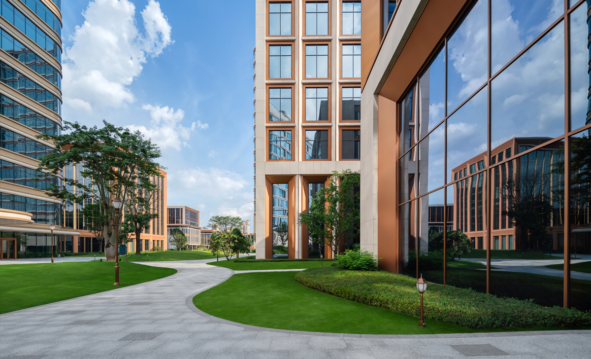華為廣州研發(fā)中心位于白云區(qū)羅沖圍片區(qū)(原松洲街華僑糖廠地塊),是華為技術(shù)有限公司在廣州的首個(gè)研發(fā)基地,聚焦智能汽車、云計(jì)算及物聯(lián)網(wǎng)等領(lǐng)域的研發(fā)。園區(qū)占地面積約11.93萬(wàn)平方米,其中由普邦股份打造的園林景觀面積9.2萬(wàn)平方米。 項(xiàng)目巧借地形,化高差為特色,將東側(cè)山體與道路間13米的高差、建筑與江岸的5.7米的落差,巧妙轉(zhuǎn)化為景觀優(yōu)勢(shì),營(yíng)造出層次豐富的空間體驗(yàn)。與此同時(shí),保留場(chǎng)地內(nèi)原有22棵大樹,新增主景喬木25棵,結(jié)合景觀層次梳理及多樣化的鋪裝設(shè)計(jì),構(gòu)建出多元化的景觀空間。園內(nèi)整體景觀布局清晰:一條中央景觀主軸串聯(lián)起五大特色庭院,一條濱江景觀帶舒展于江畔,酒店片區(qū)與綠化隔離區(qū)各具風(fēng)采。