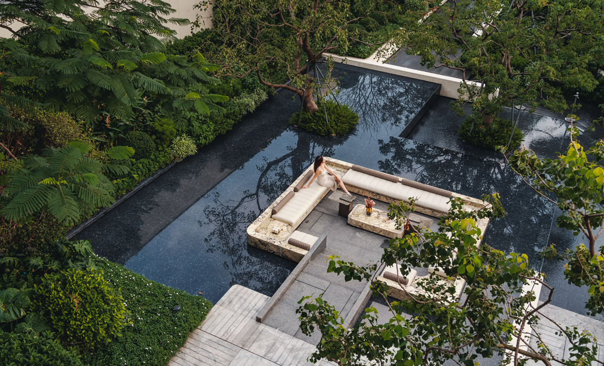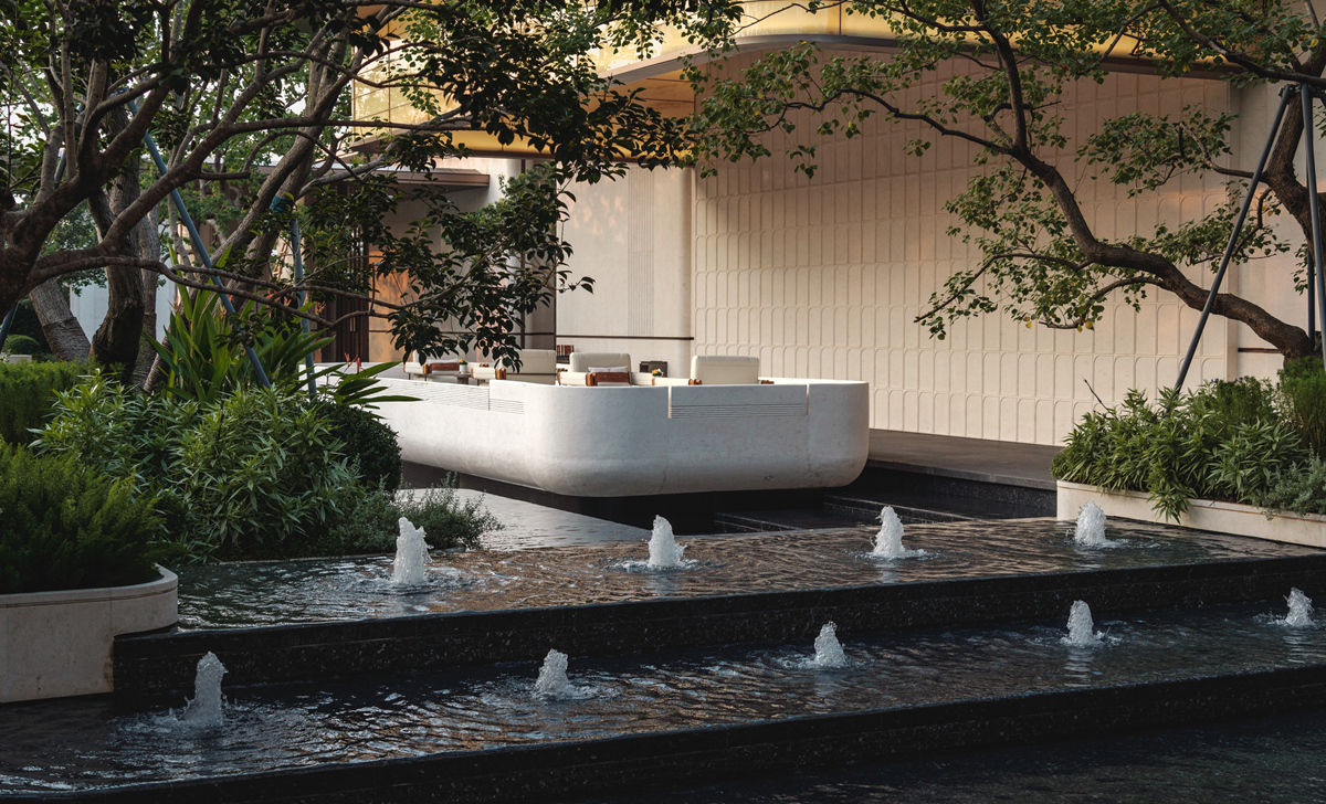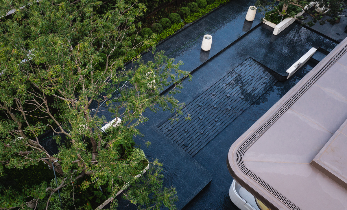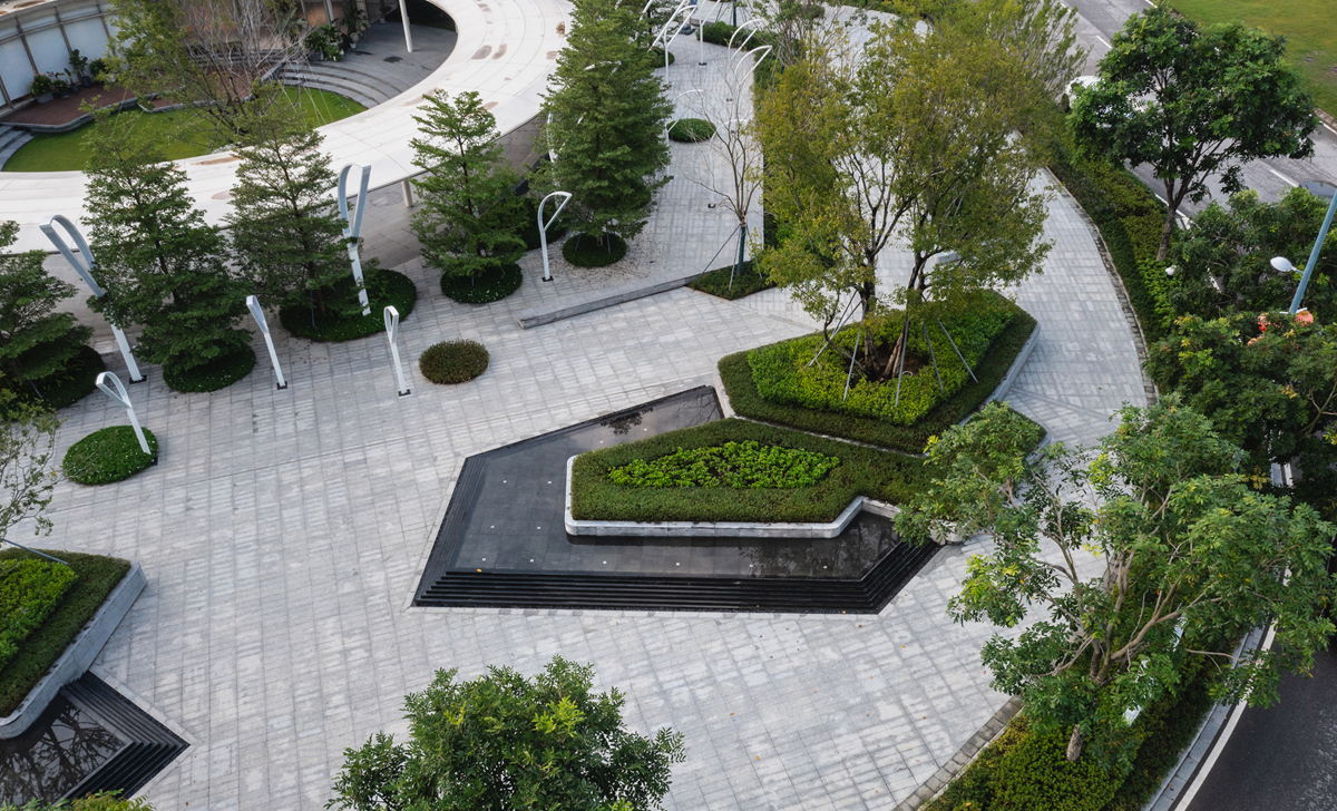 作為佛山首個(gè)「序」系超新規(guī)濱水展示區(qū),項(xiàng)目以“現(xiàn)代美學(xué)+生態(tài)宜居” 為理念,將高奢酒店的營造邏輯融入社區(qū)景觀,引東平河活水入園,納天光云影入室,打造沉浸式歸家動線與多層次景觀空間,構(gòu)筑一處自然、建筑與生活共鳴的藝術(shù)場域。普邦股份克服場地復(fù)雜、雨季施工、眾多水景結(jié)構(gòu)、異形結(jié)構(gòu)、弧形景墻等諸多難題,在前期規(guī)劃、方案落地,實(shí)施過程中整體籌劃,通過精細(xì)化鋪裝拼接、藝術(shù)景墻與鏡面水景的組合營造高端質(zhì)感,結(jié)合組團(tuán)綠化及濱水植物帶,呈現(xiàn)出兼具高端質(zhì)感與自然活力的展示區(qū)景觀,樹立濱水人居營造新標(biāo)桿。