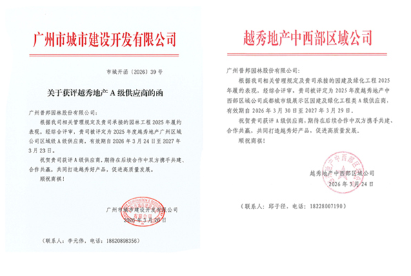 我司榮獲越秀地產(chǎn)雙區(qū)域“A級(jí)供應(yīng)商”