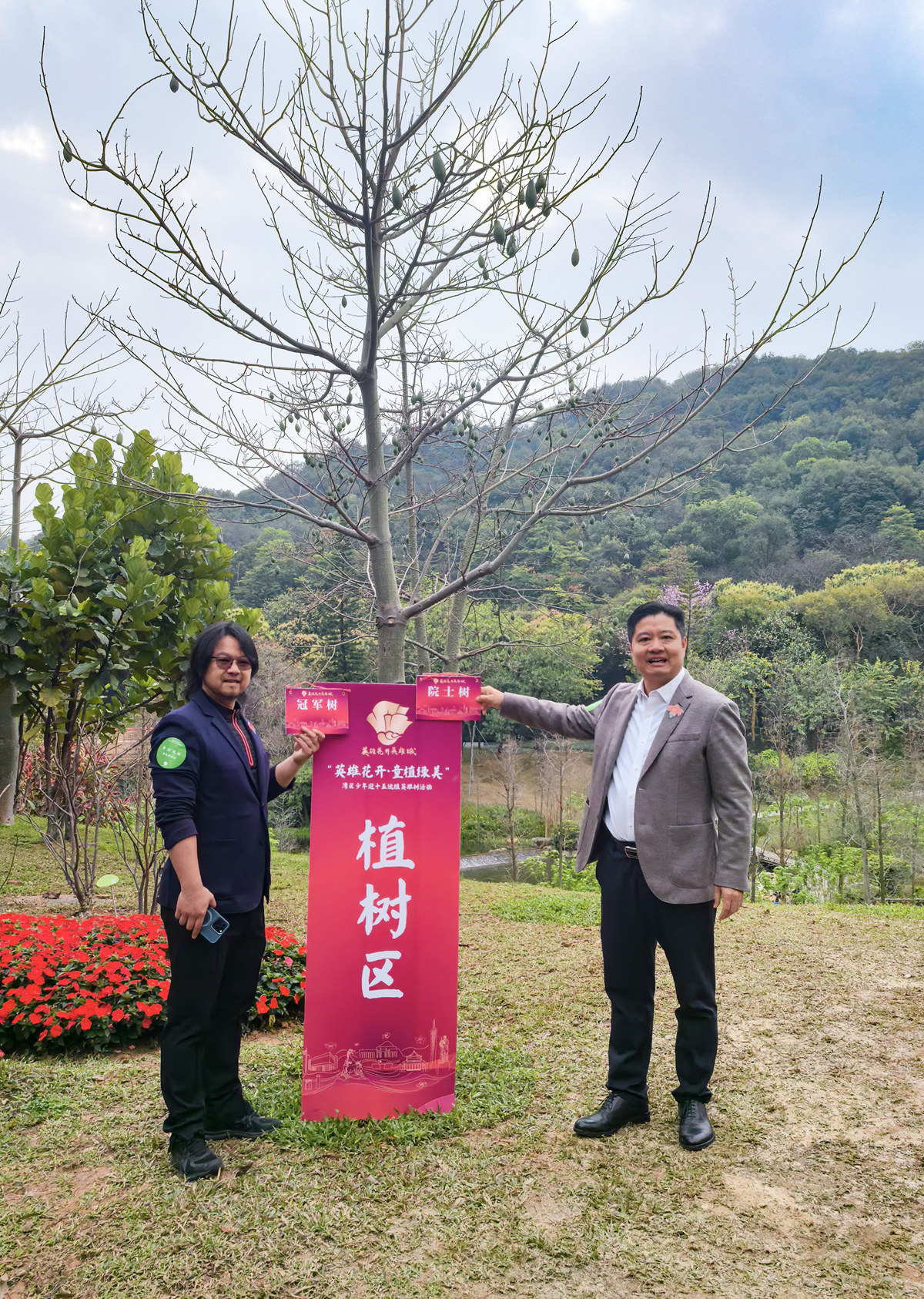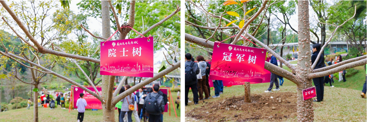 活動當天,中國科學院院士吳碩賢、世界蹦床冠軍蔡琪子攜粵港澳百名少年,與廣州市林業(yè)和園林局副局長陳迅、白云山風景名勝區(qū)管理局黨委書記喬永慧等嘉賓共同揮鍬培土,將五株見證城市記憶的本地木棉植入云溪沃土。同時,吳碩賢院士即興為活動作詩《云溪植物園植樹》——春天再次到云溪,樂與兒童共戲嬉。種樹如同蕃后代,欣栽幼木在青圻。